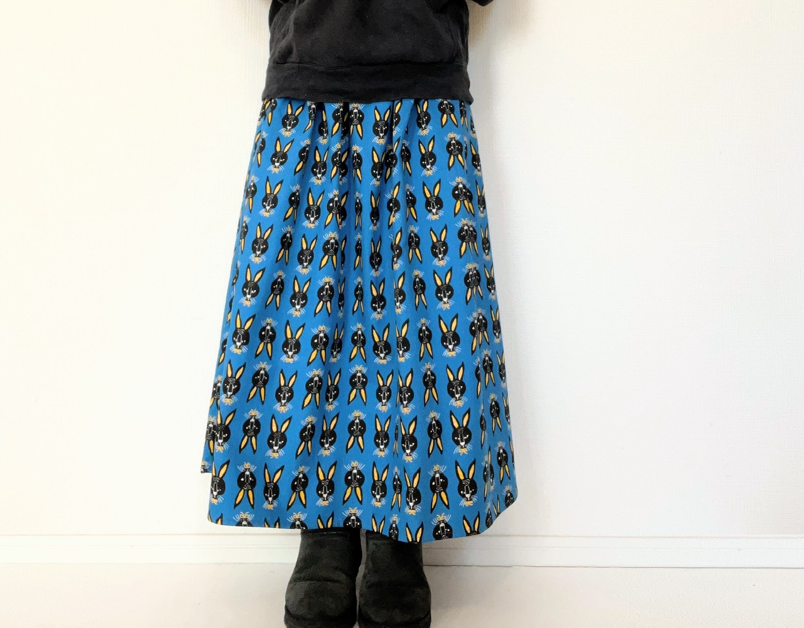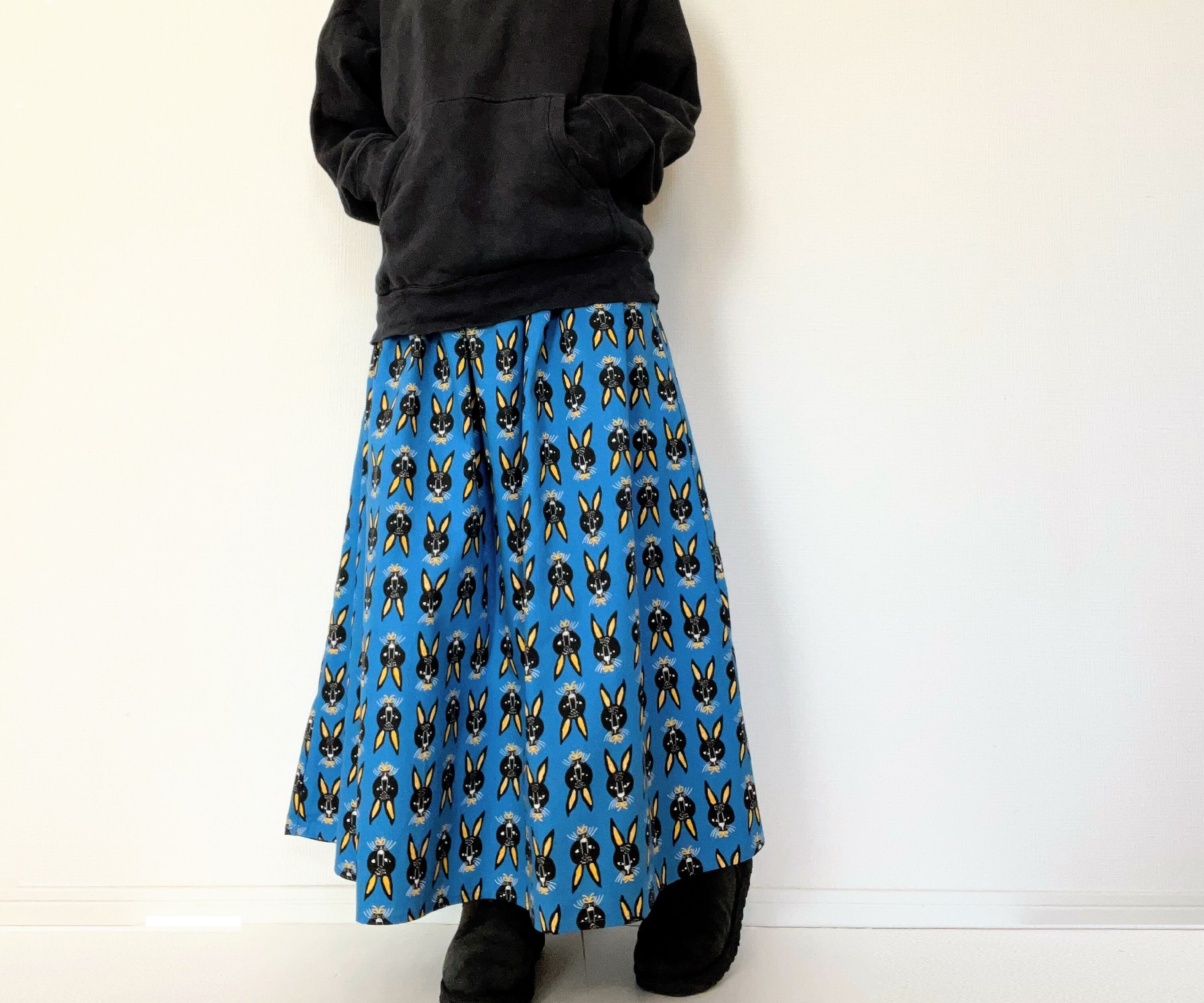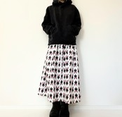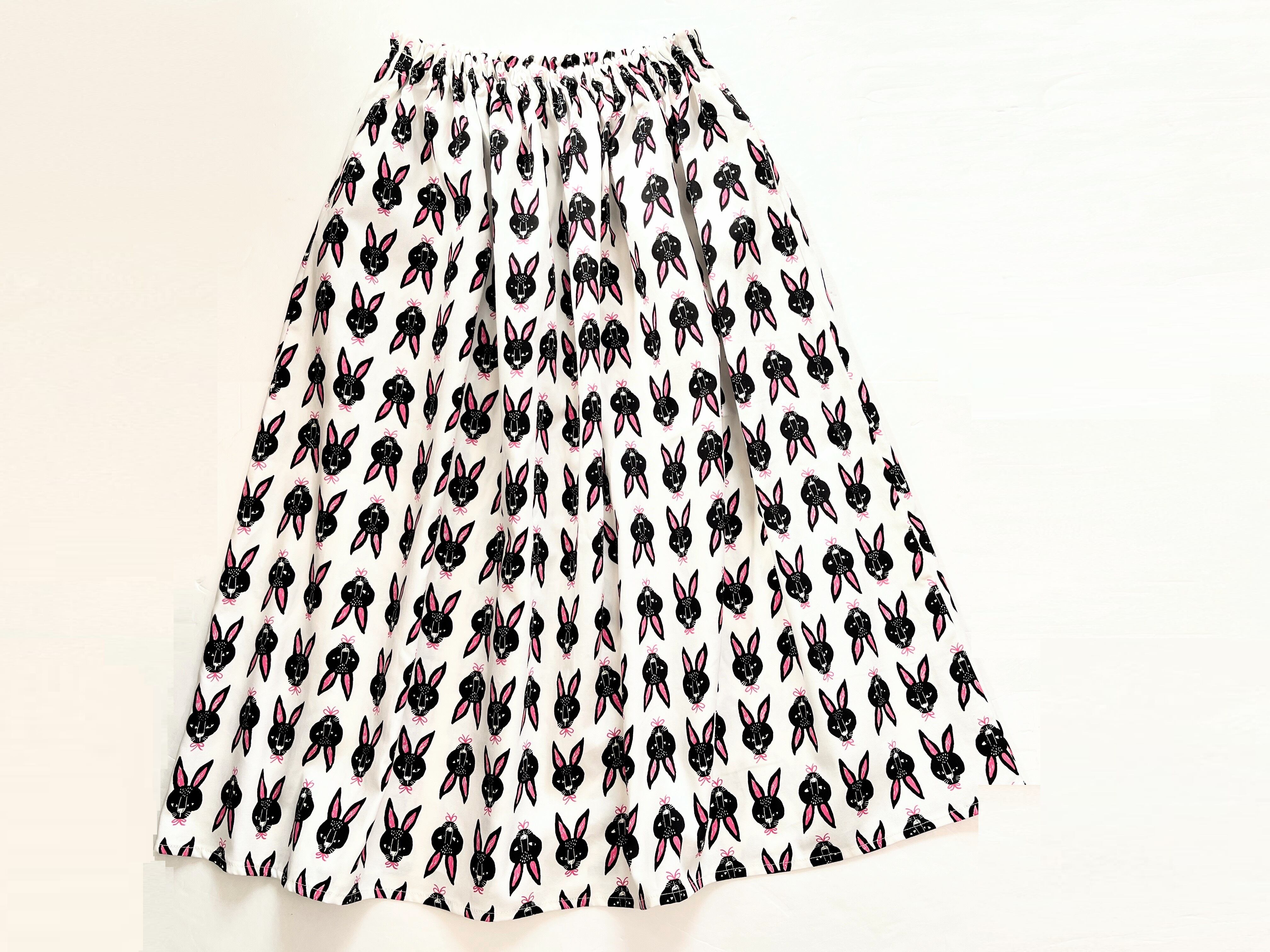 アートな黒ウサギたちのロングスカートです。