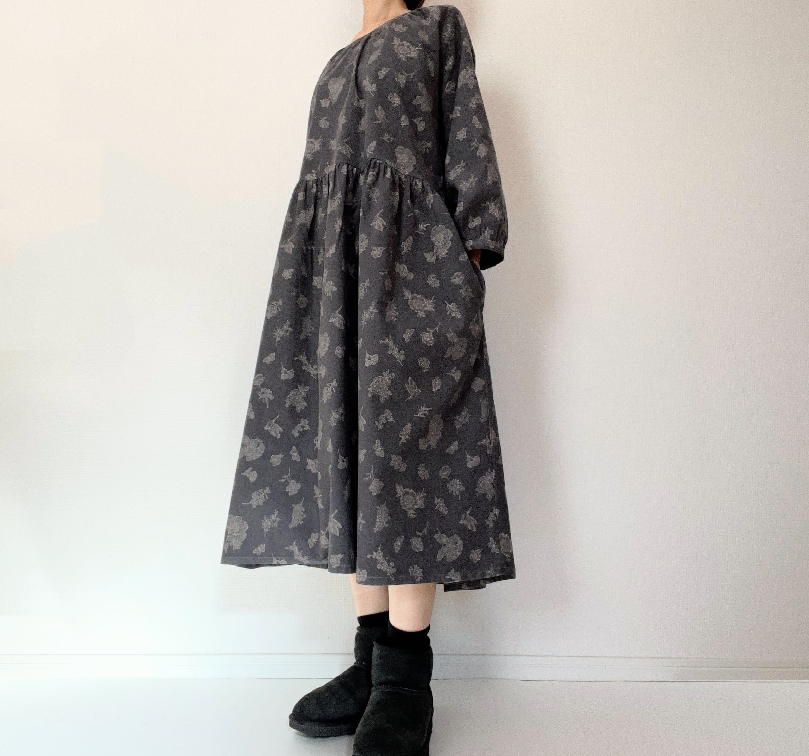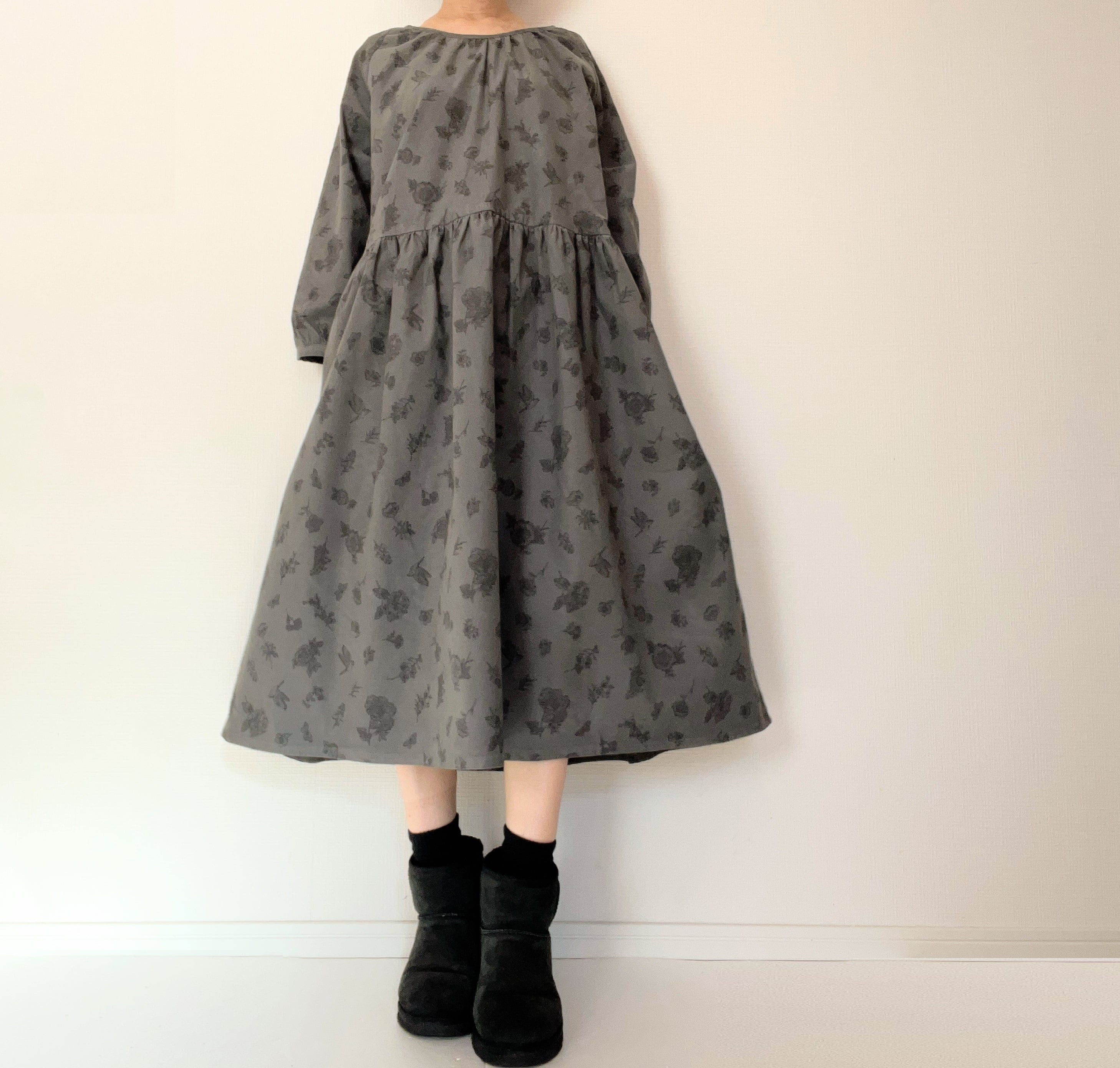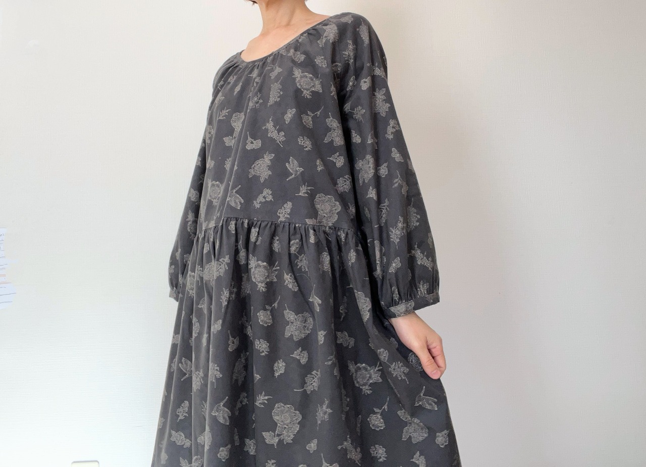 とっておきの生地で仕立てた長袖ワンピース。