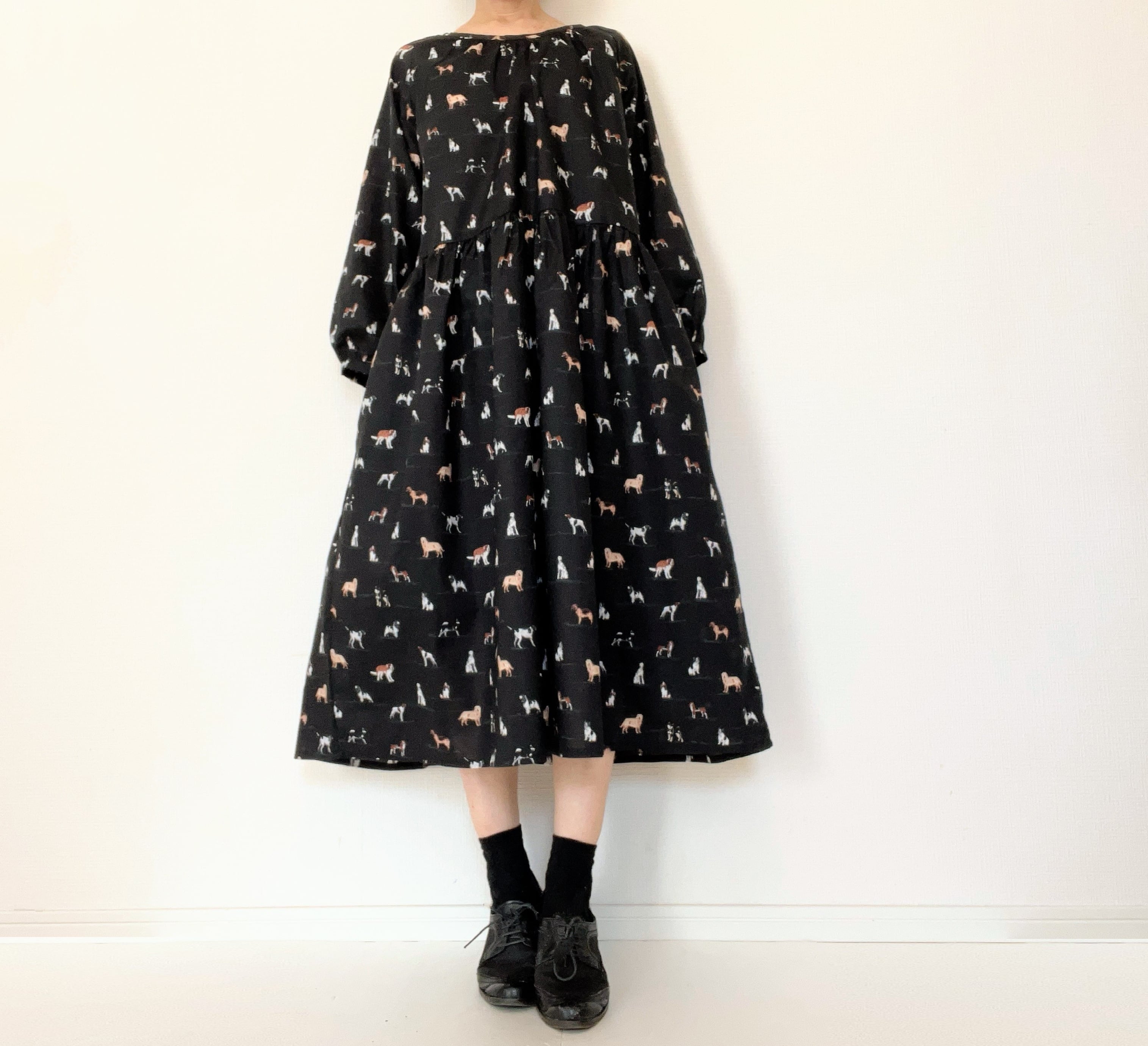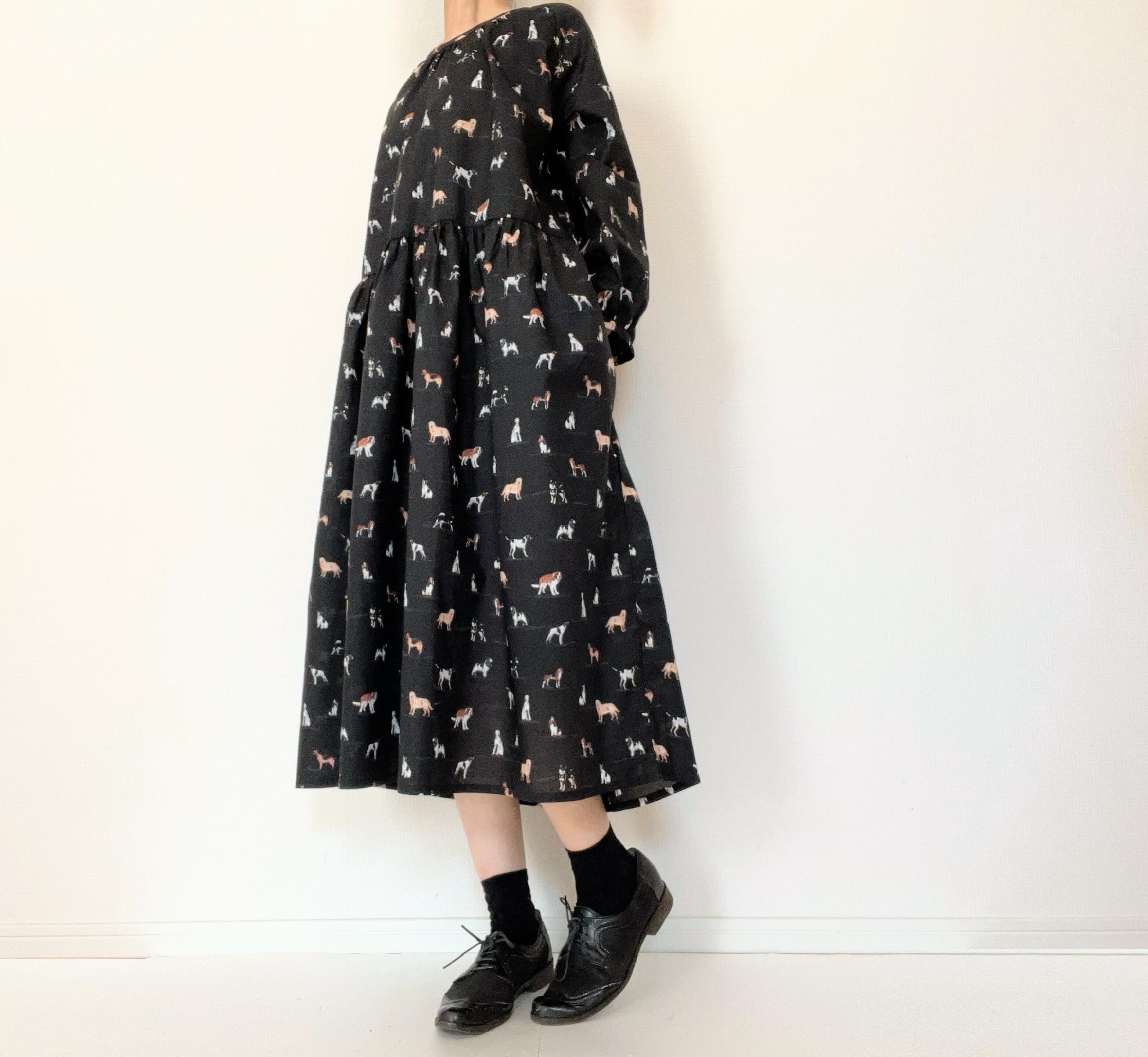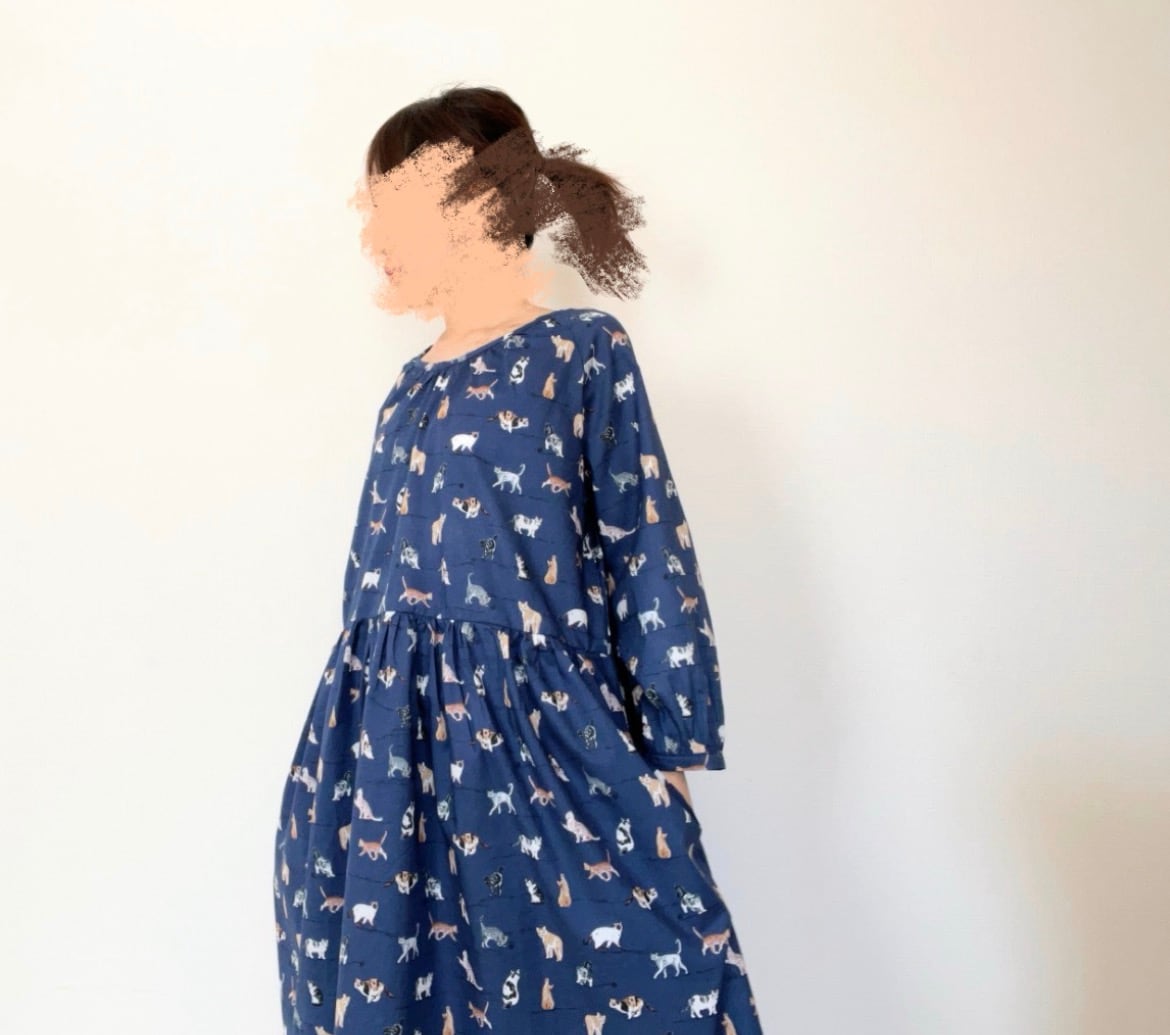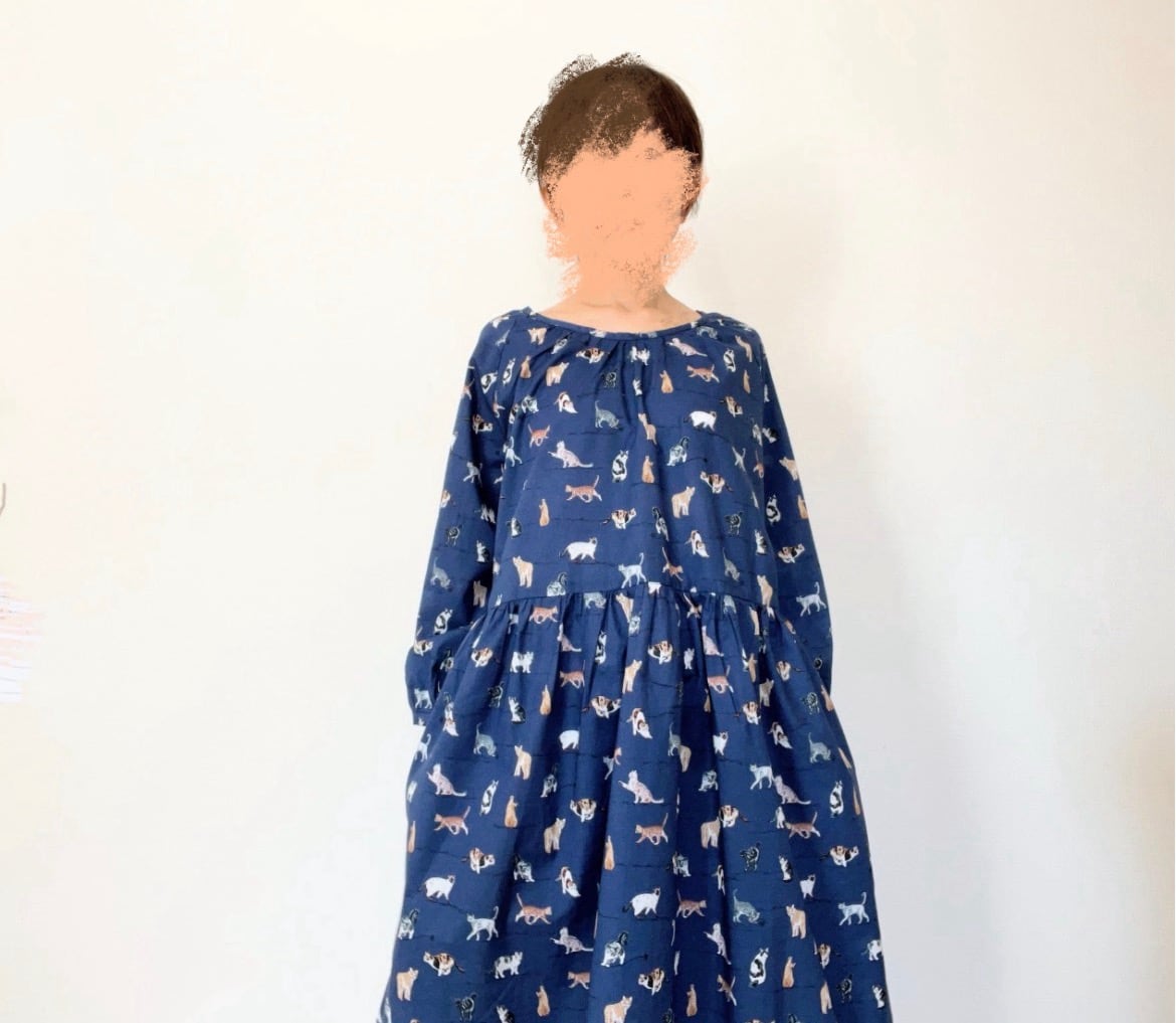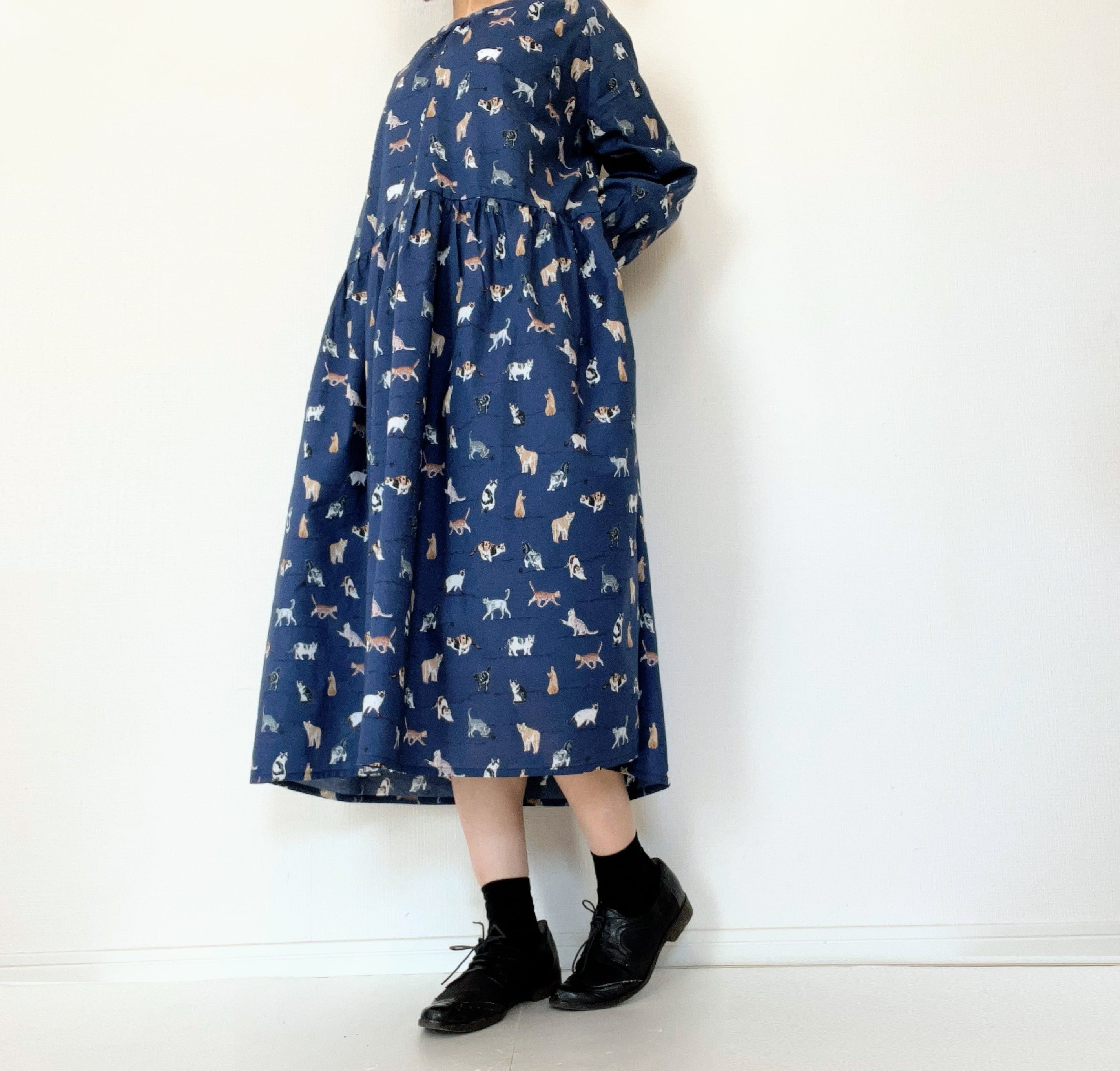 うちの子とお出かけ◎猫柄/犬柄ワンピース*国産コットン100%*ゆったりリラックス*フリーサイズ*ポケット付*長袖