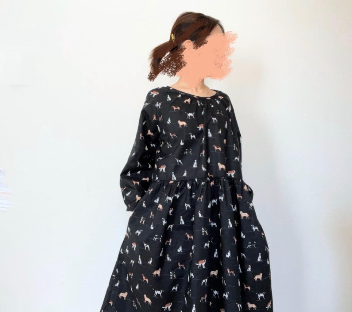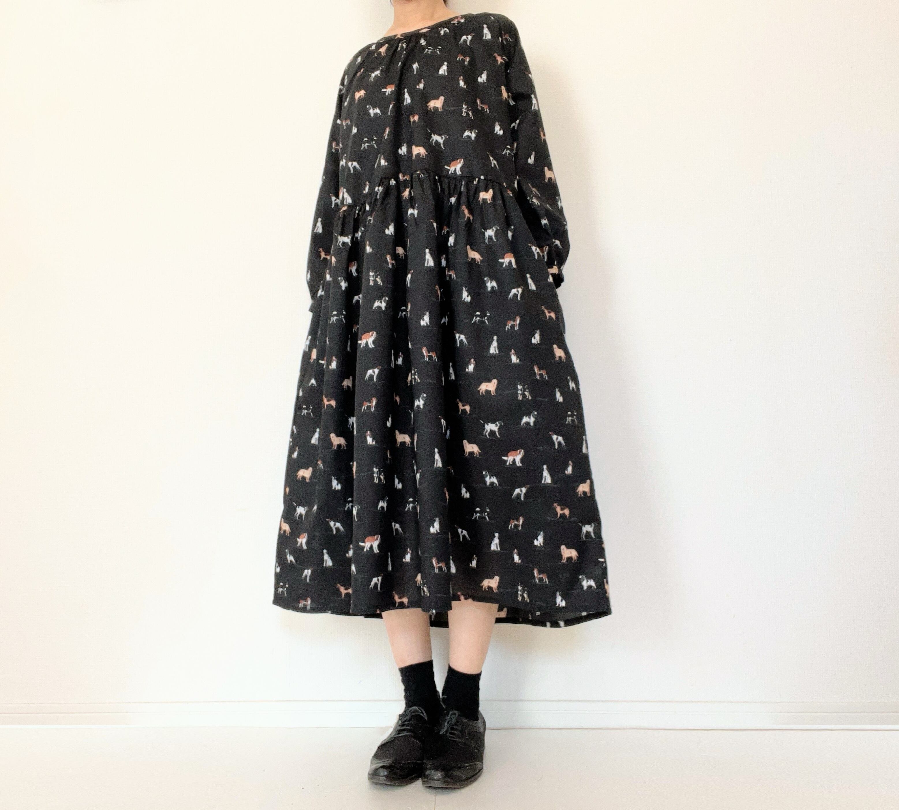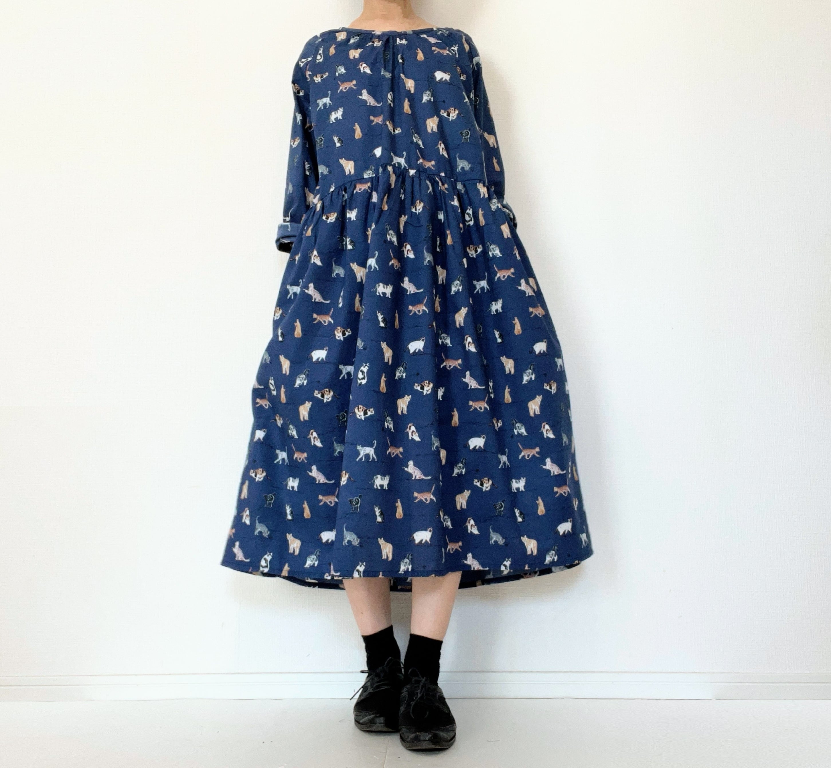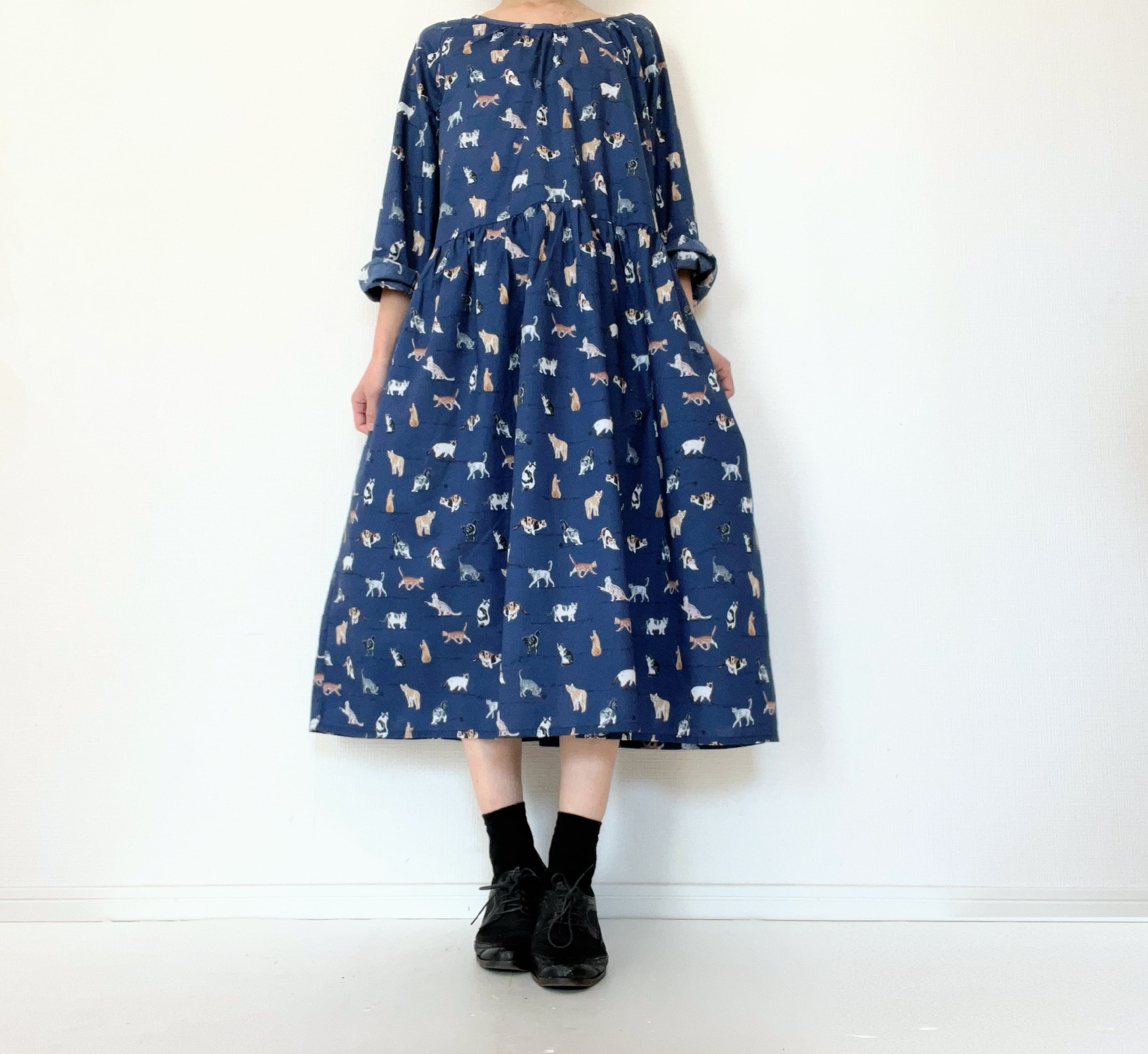 うちの子とお出かけ◎猫柄/犬柄ワンピース*国産コットン100%*ゆったりリラックス*フリーサイズ*ポケット付*長袖