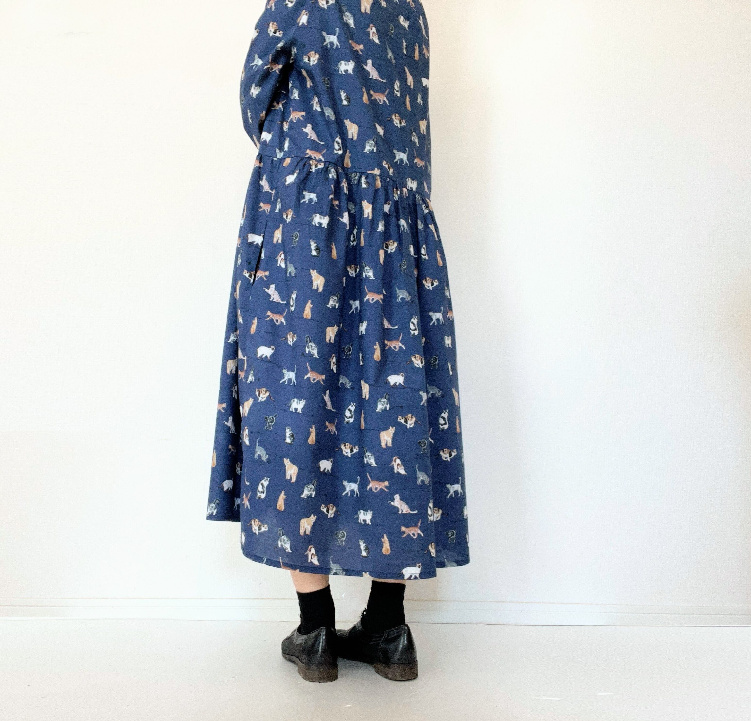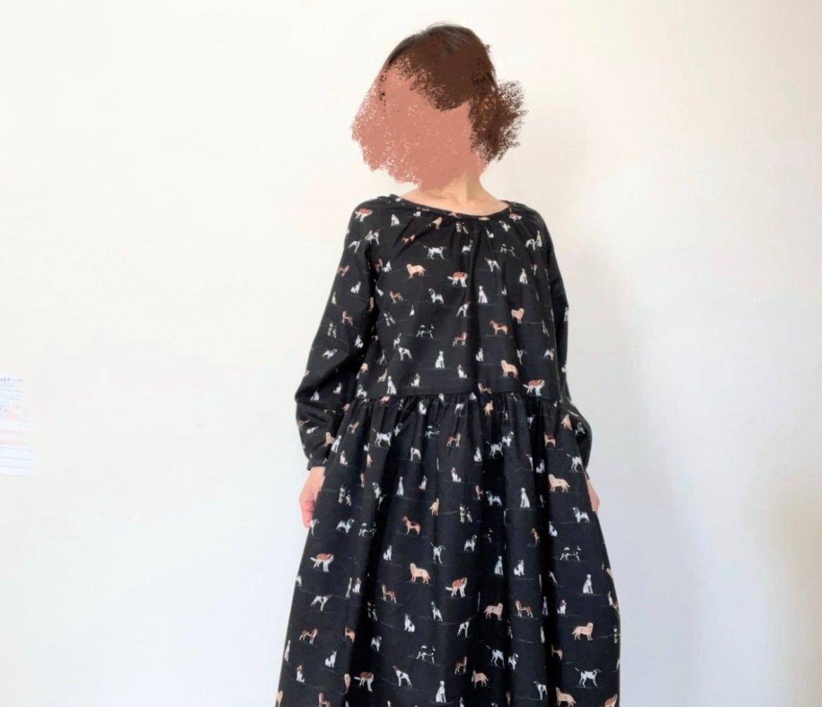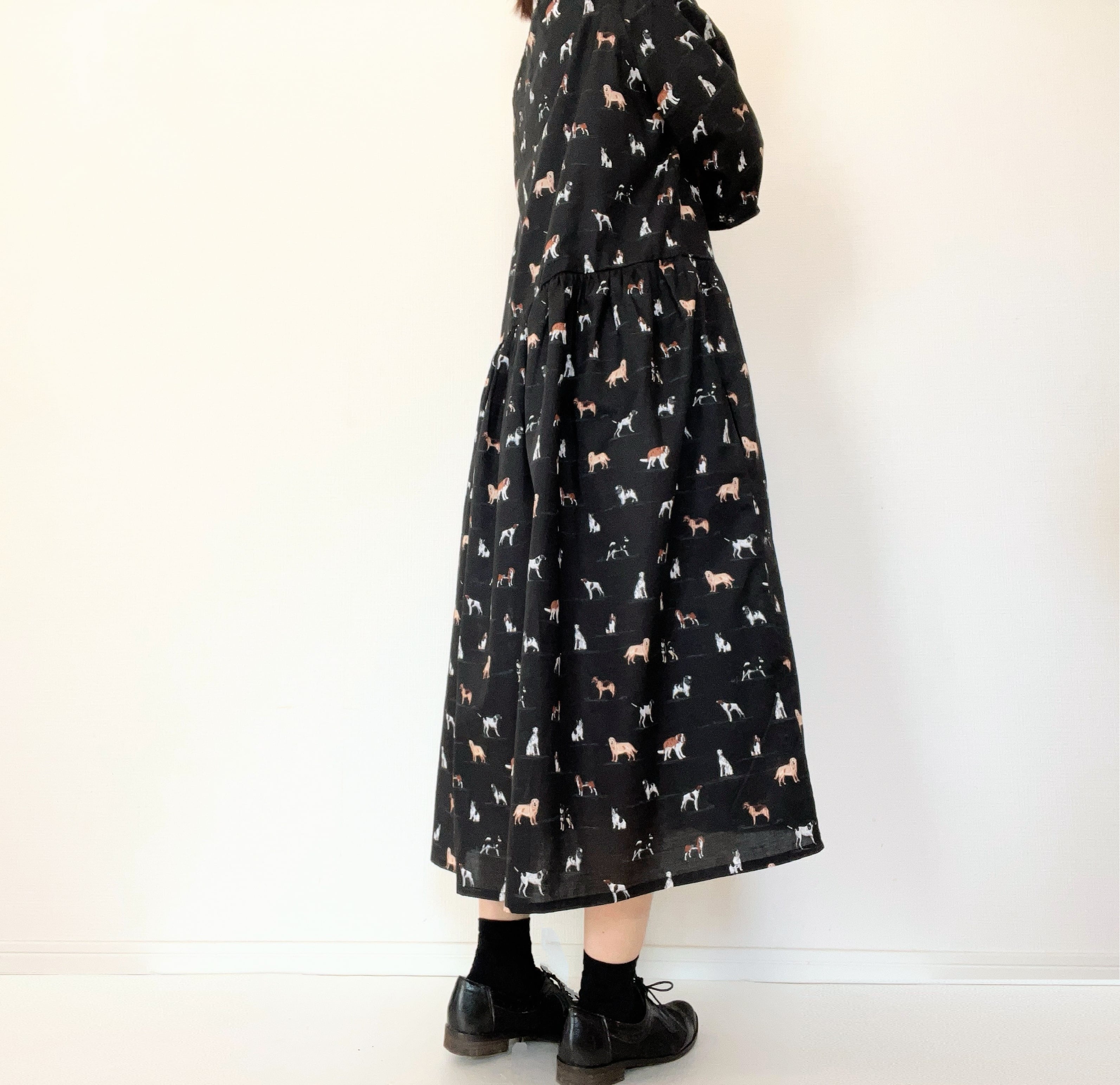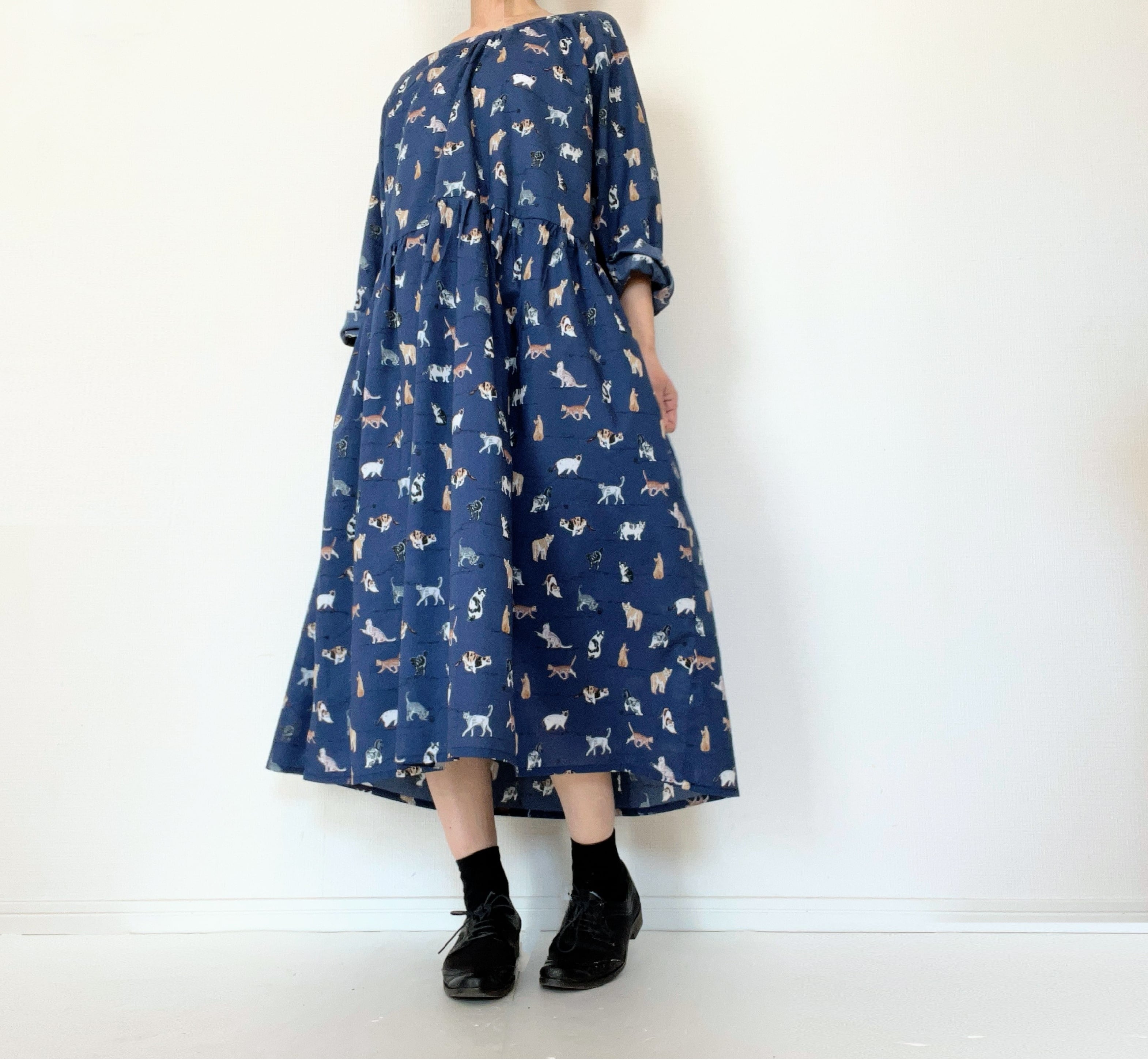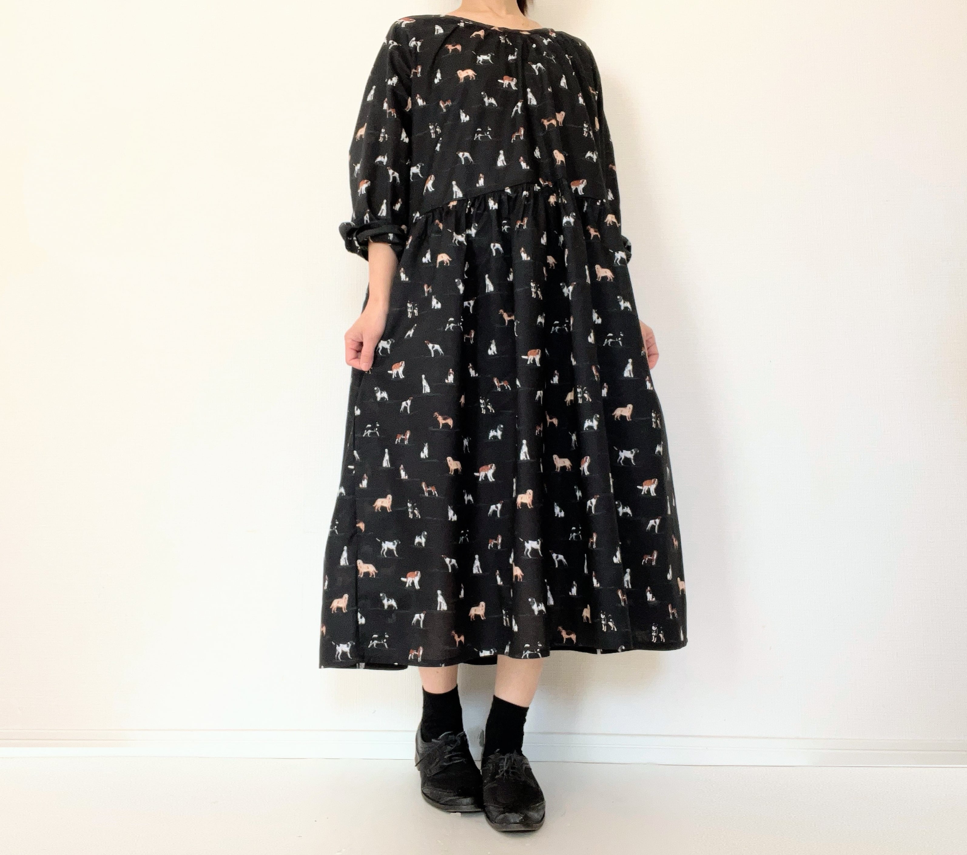 うちの子とお出かけ◎猫柄/犬柄ワンピース*国産コットン100%*ゆったりリラックス*フリーサイズ*ポケット付*長袖