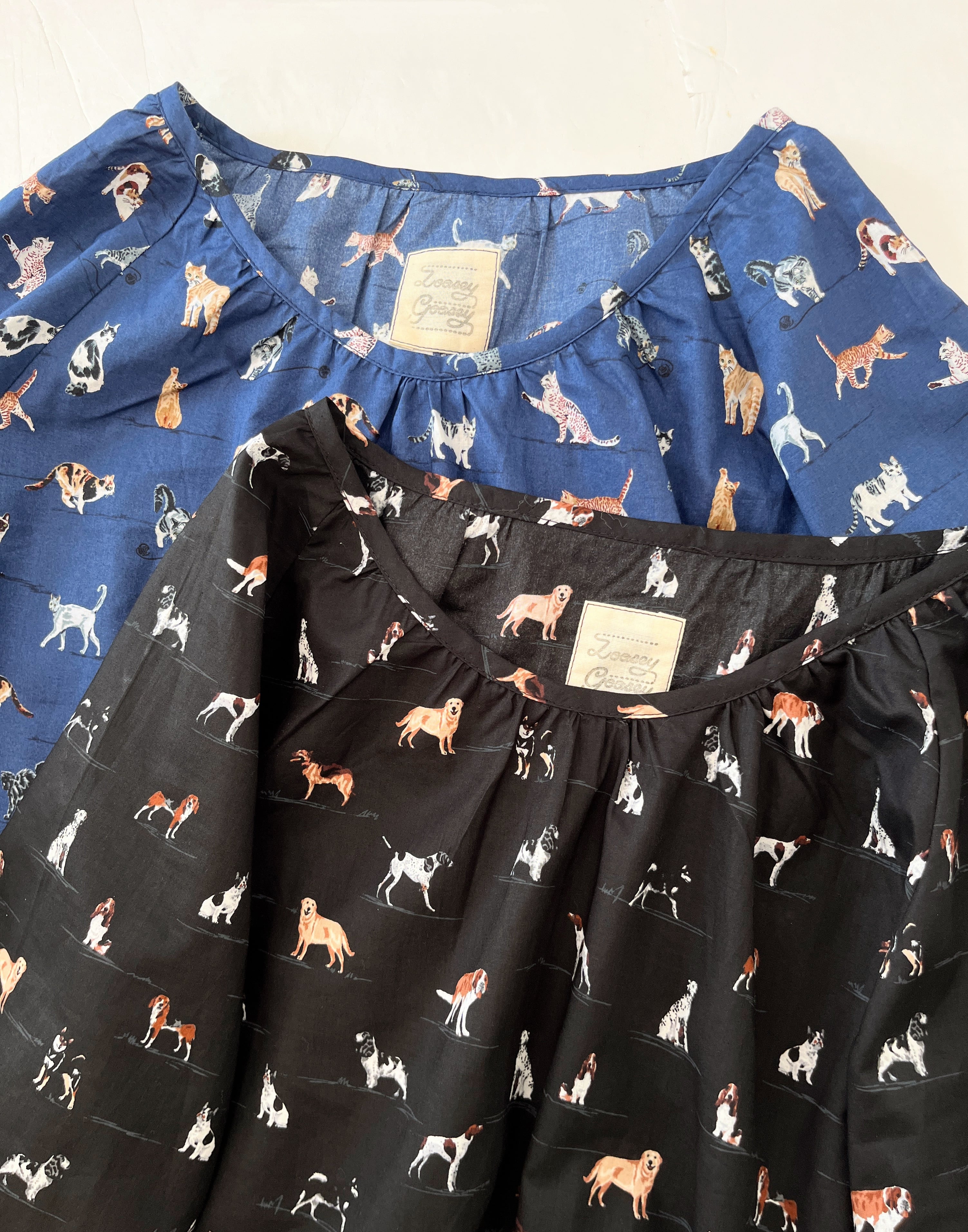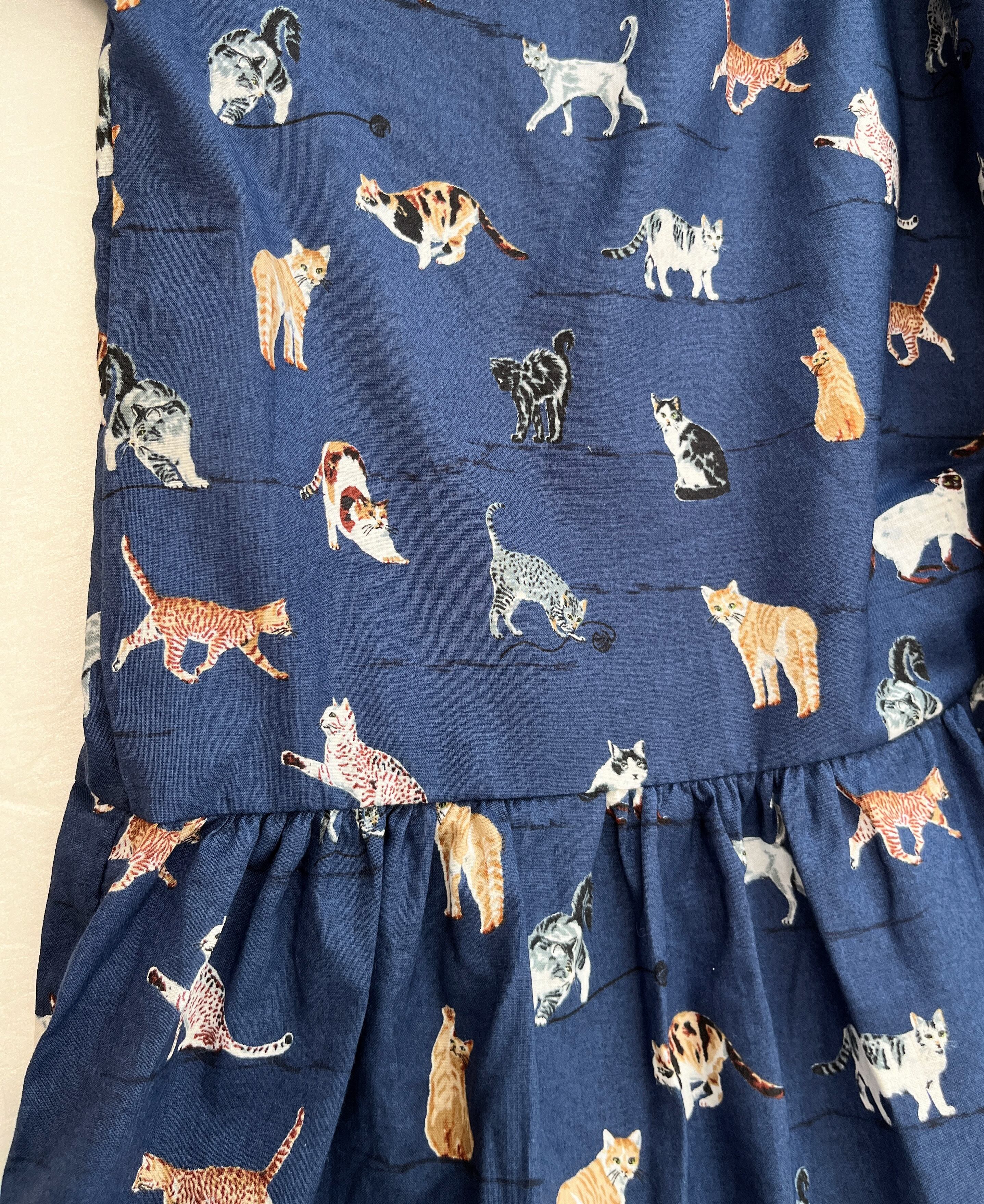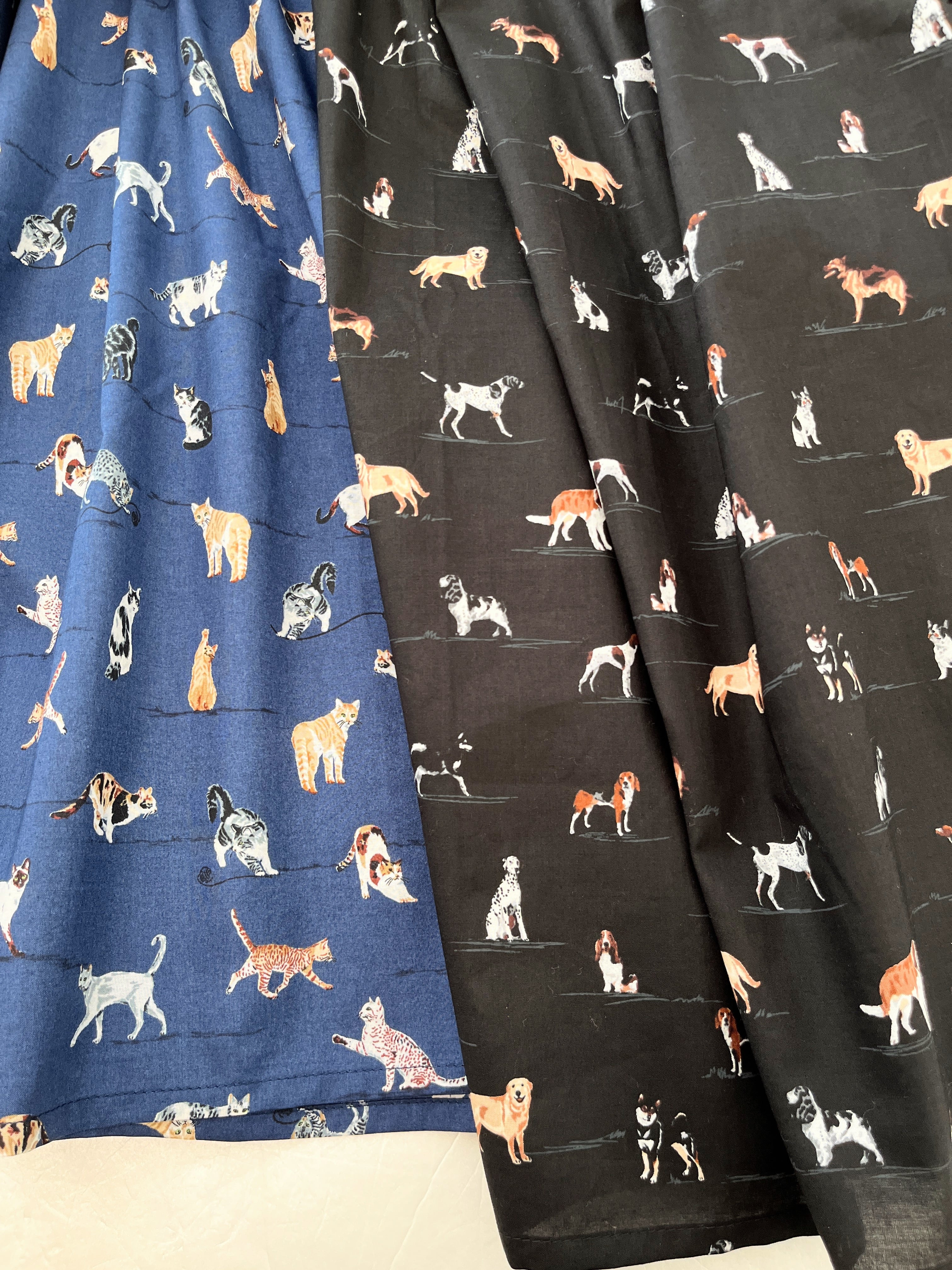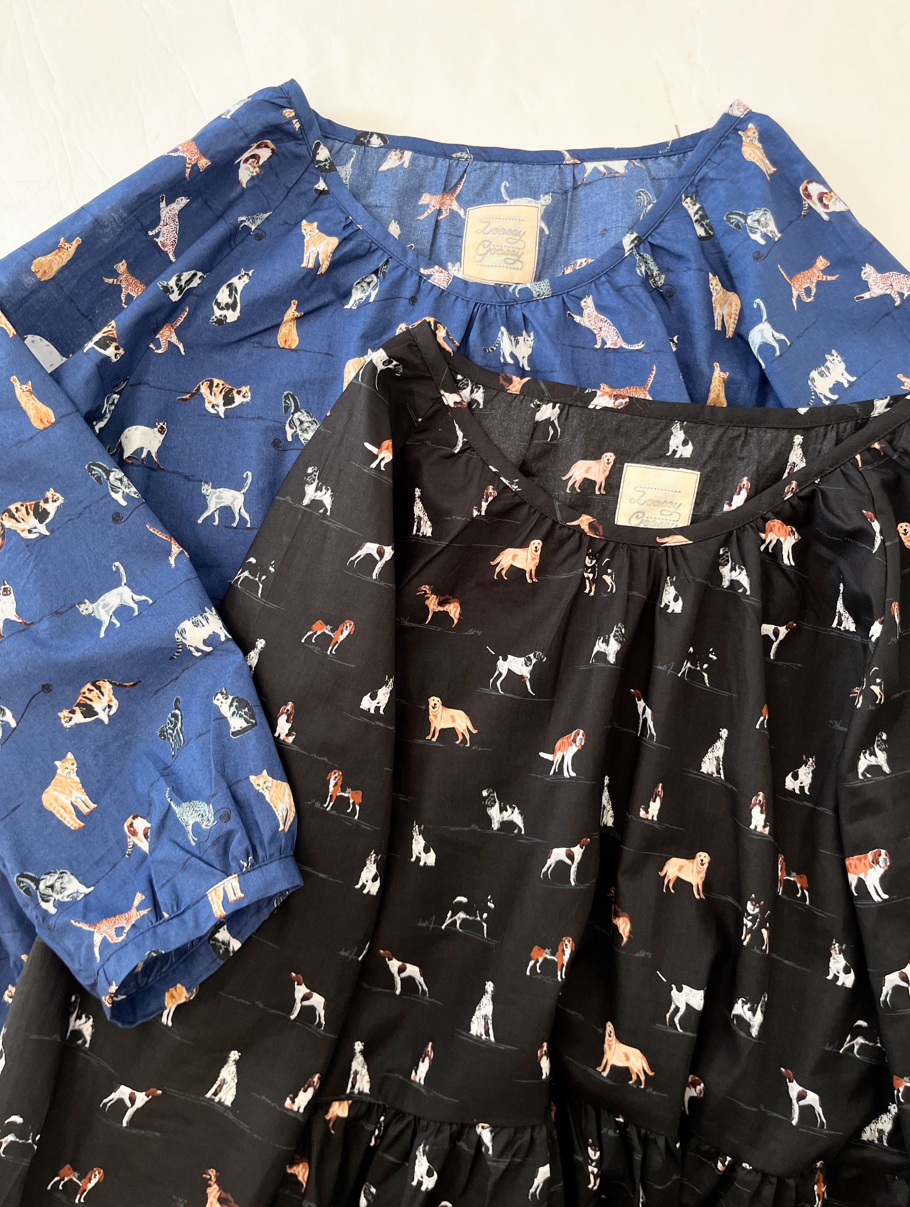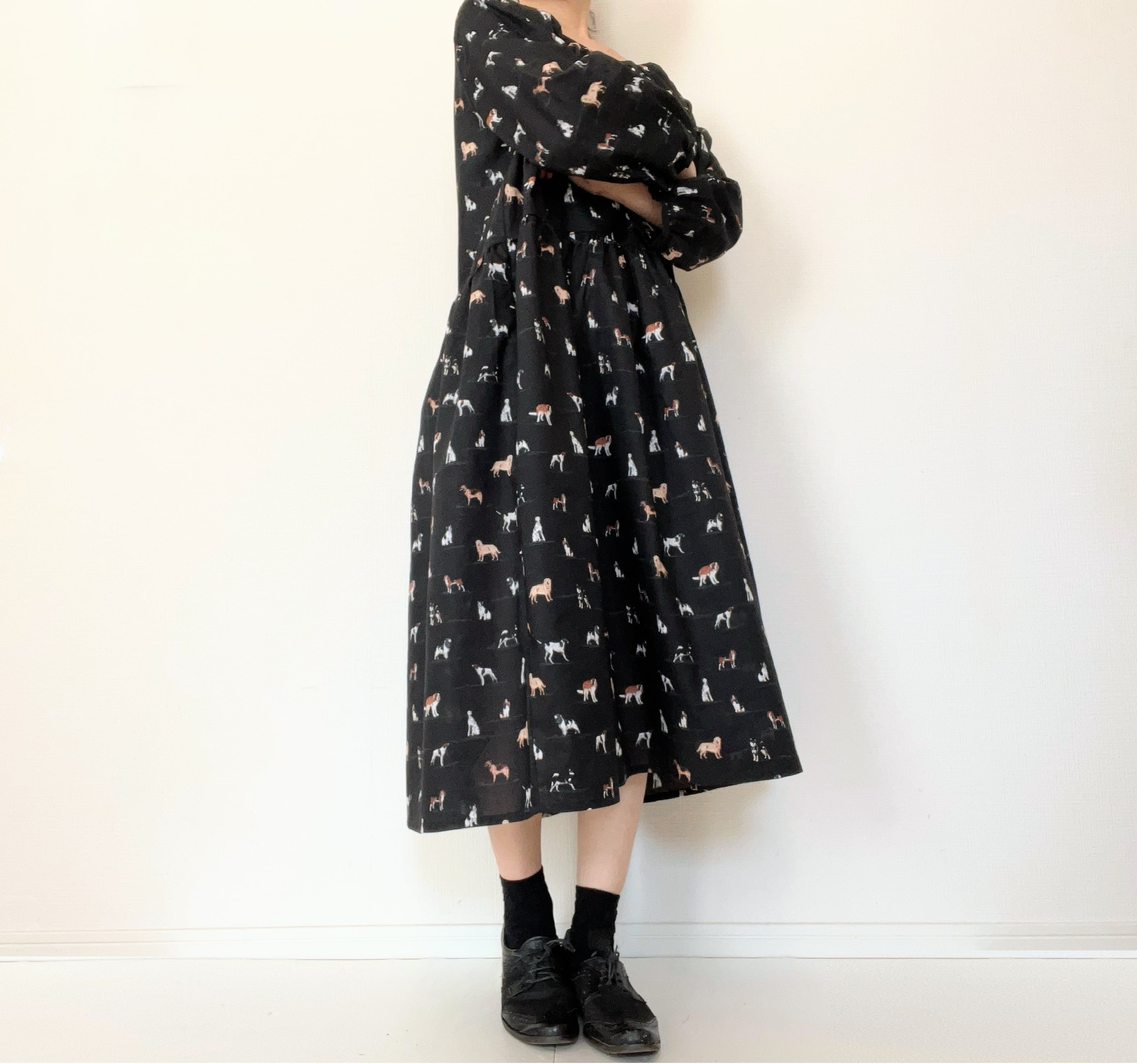 うちの子とお出かけ◎猫柄/犬柄ワンピース*国産コットン100%*ゆったりリラックス*フリーサイズ*ポケット付*長袖