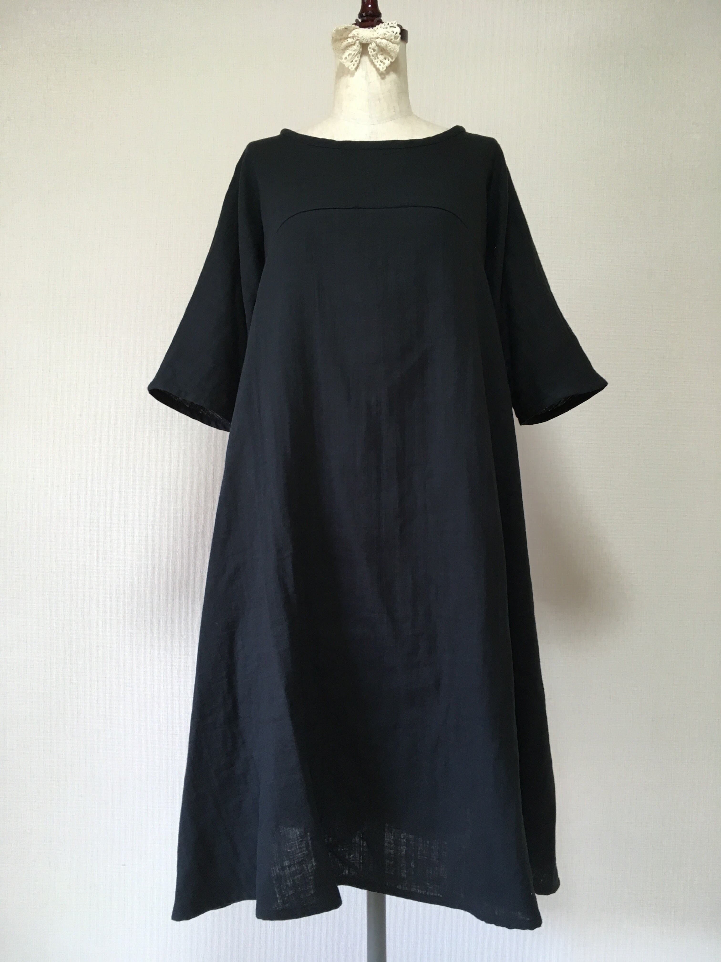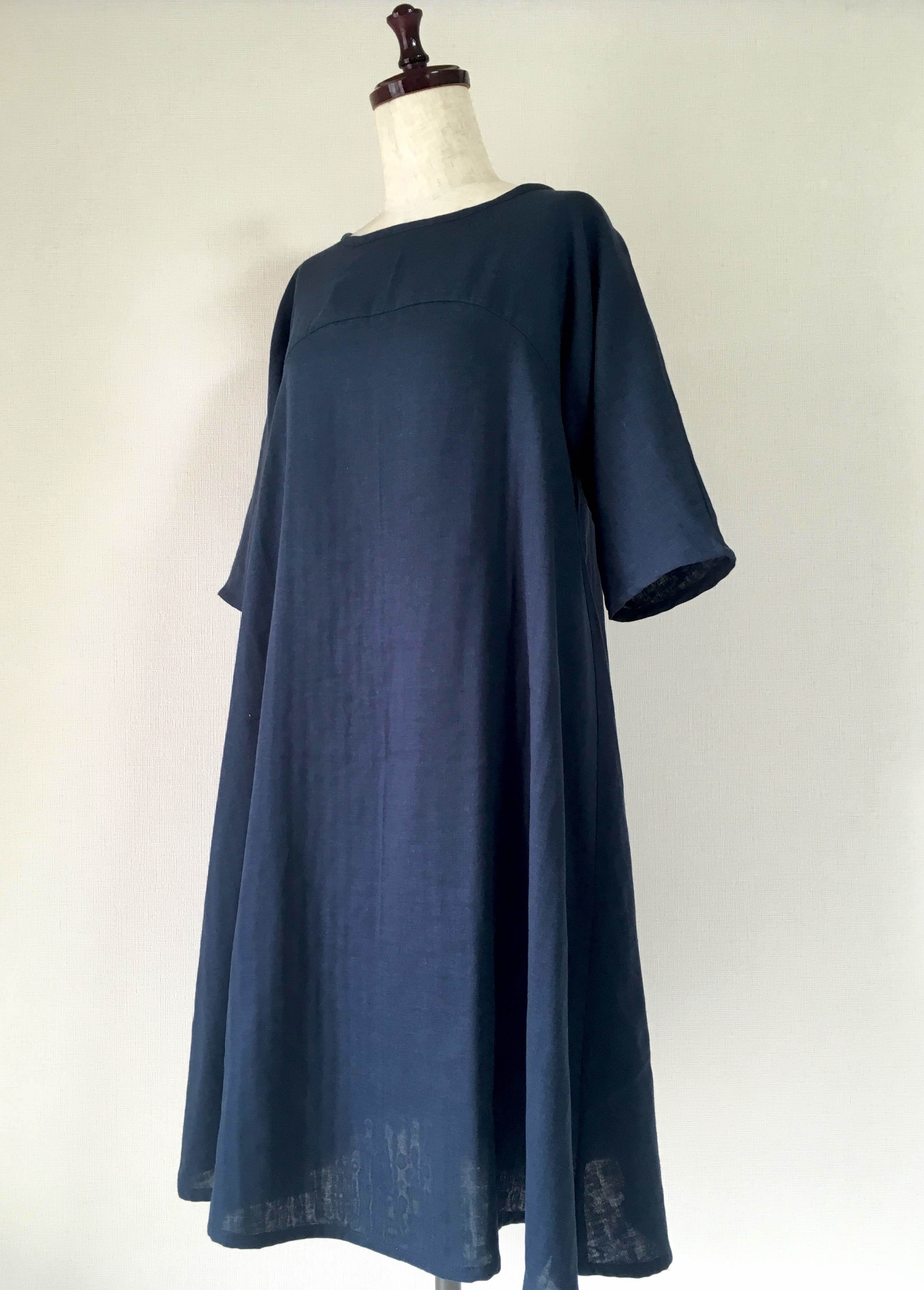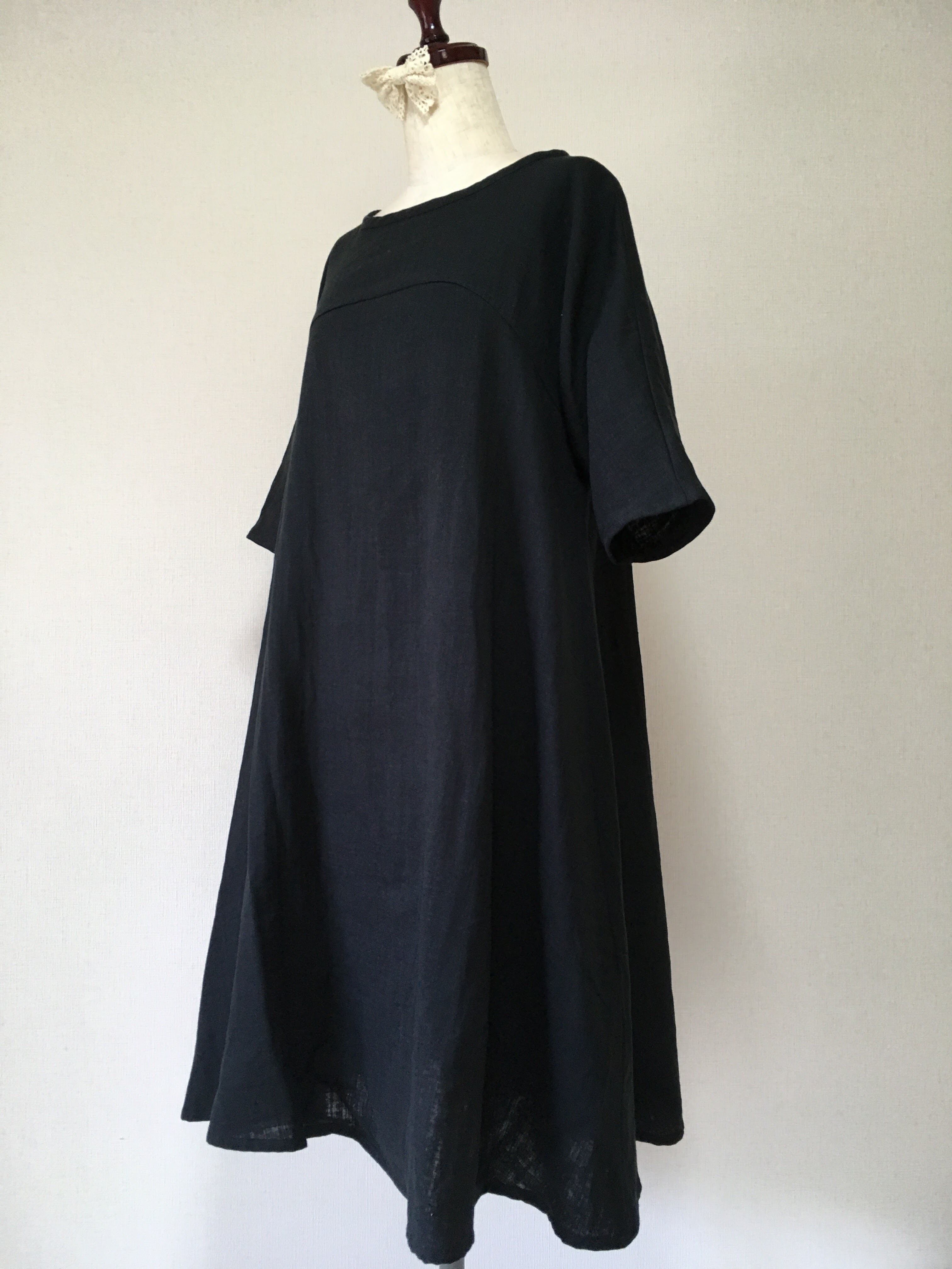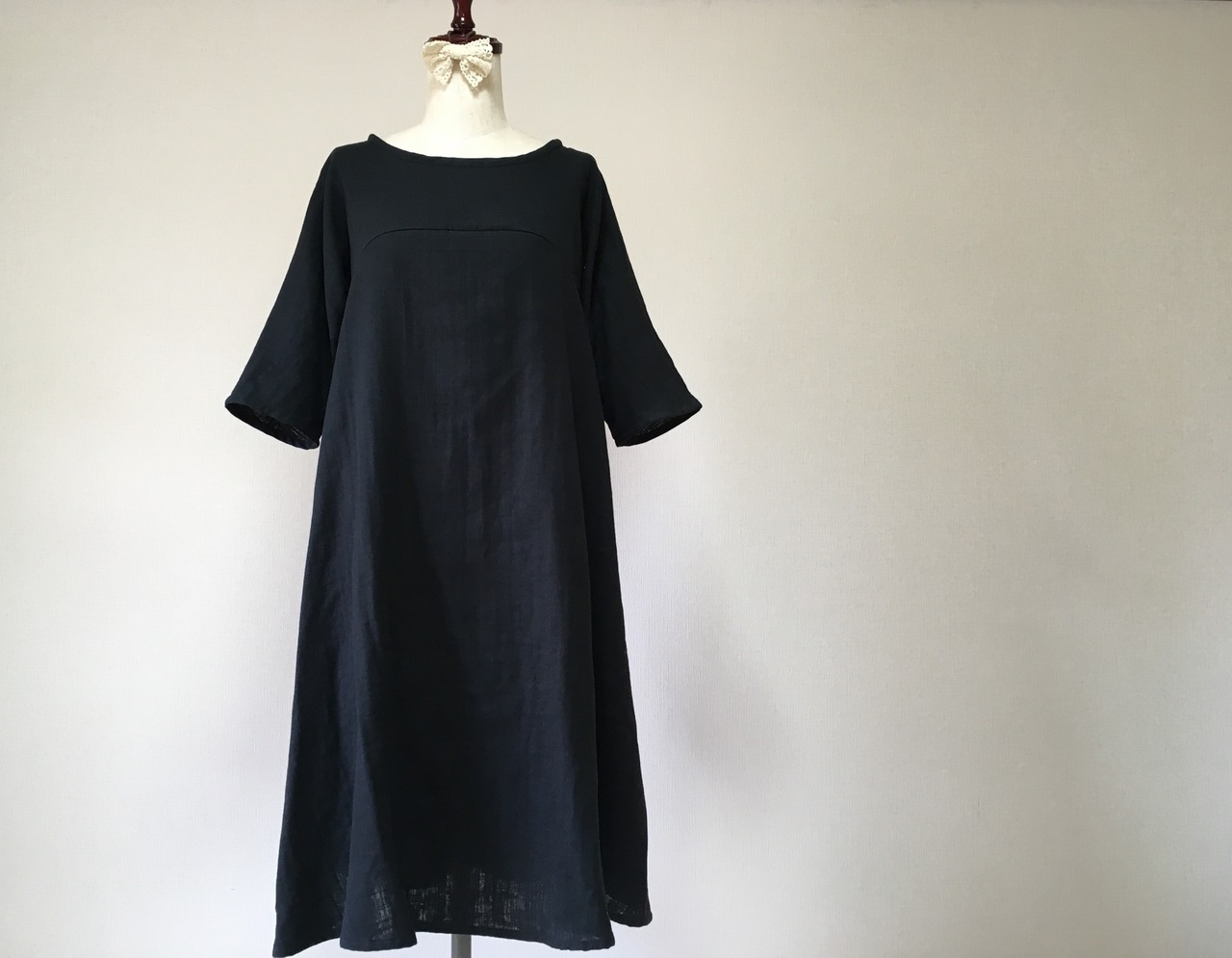 【送料無料】シンプル無地のフレアワンピース*ふんわりダブルガーゼ*軽量 国産コットン100%*ポケット付き