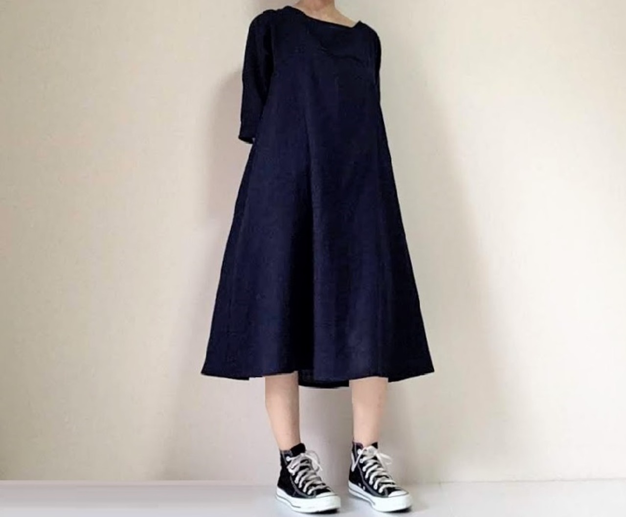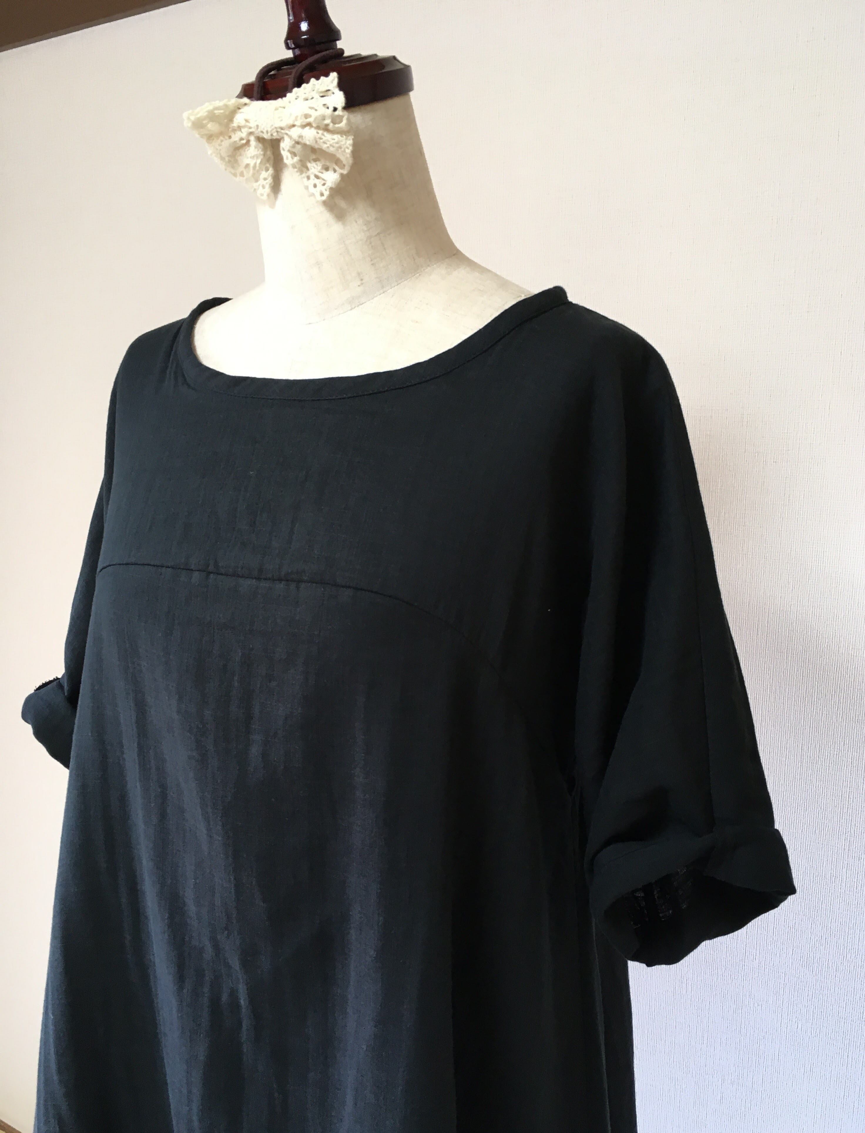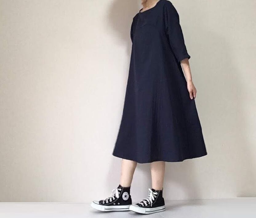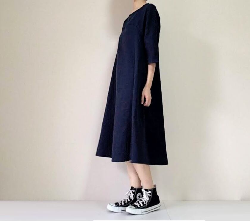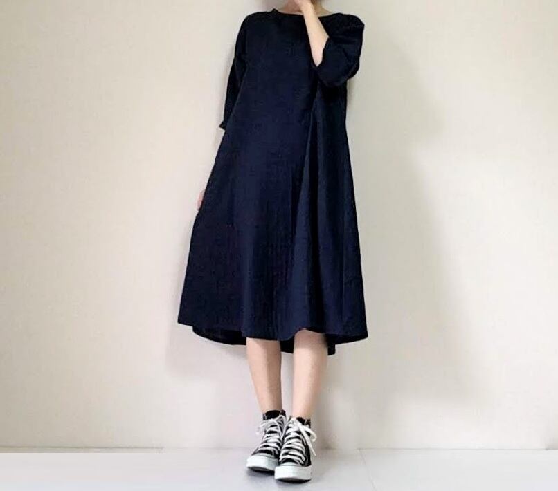 フレンチスリーブなので、肩幅も気にせず着られます。