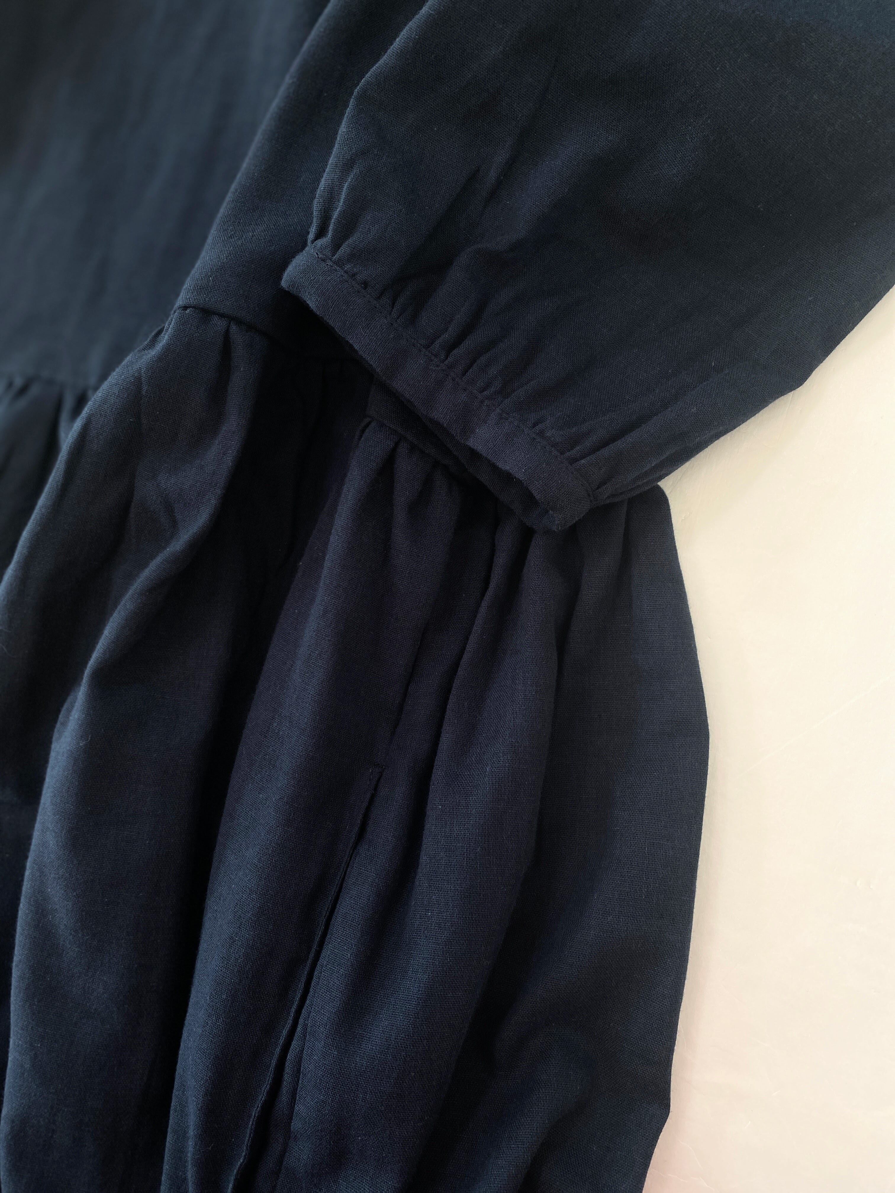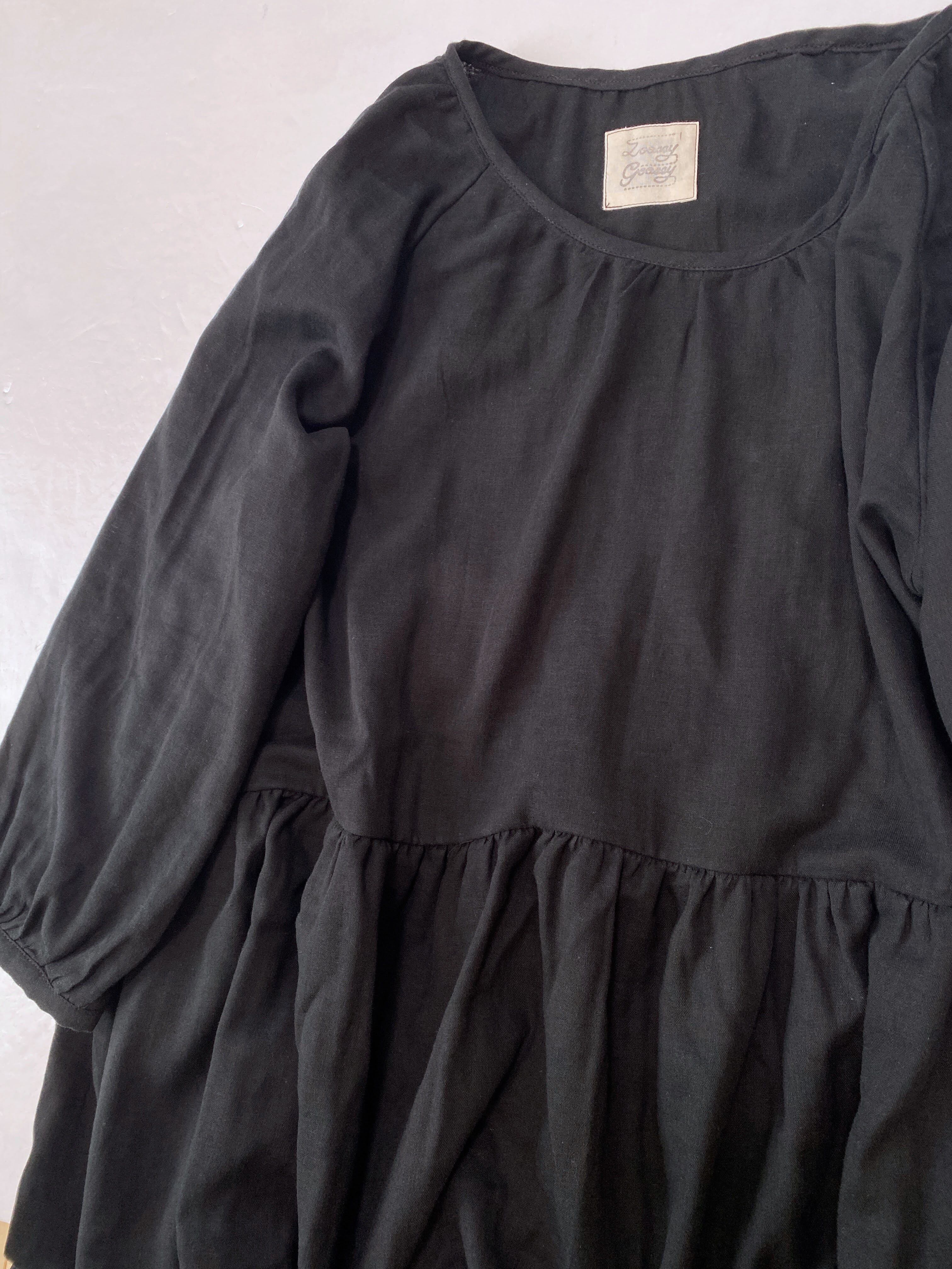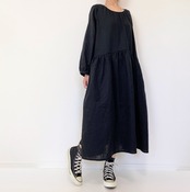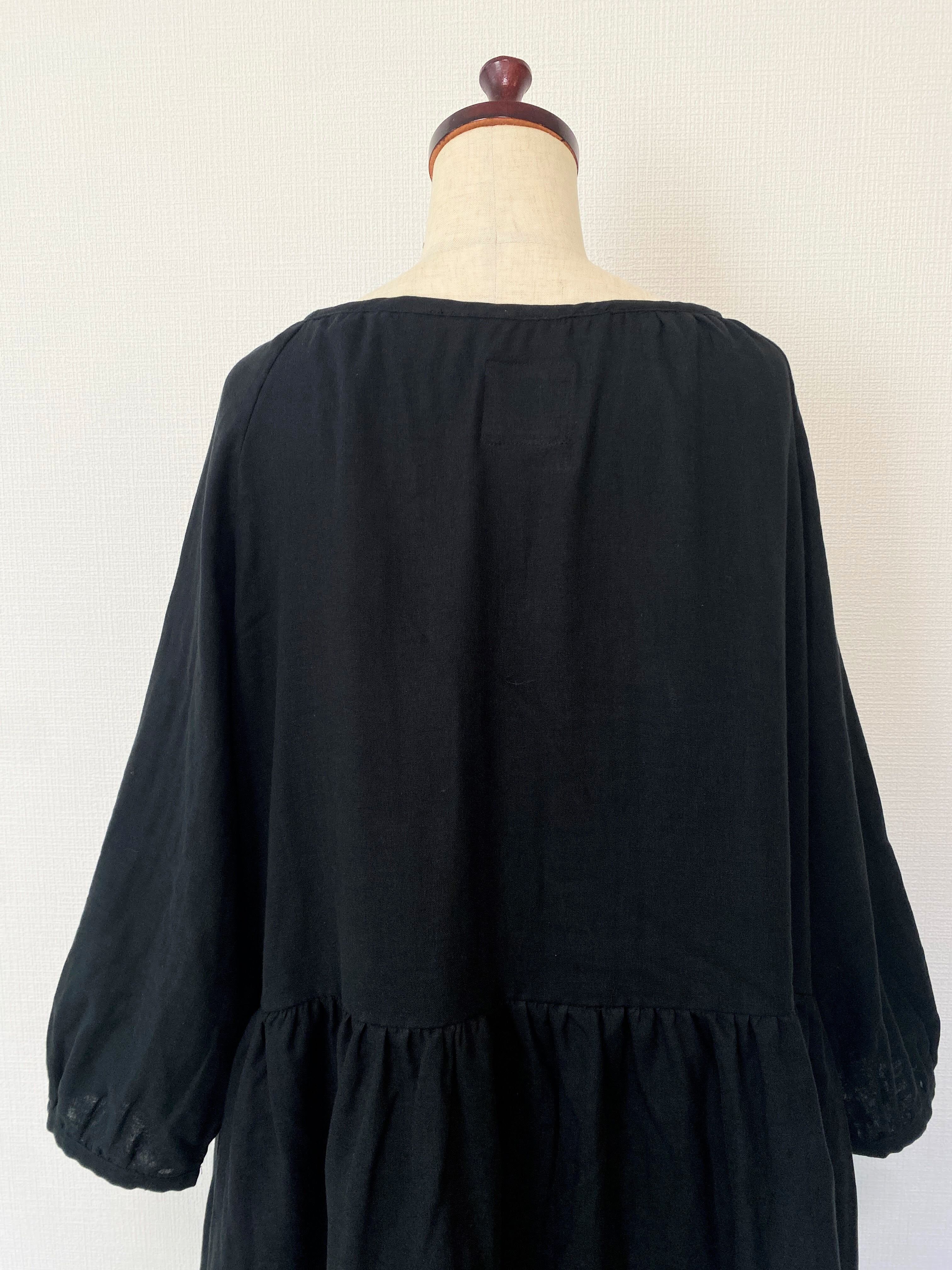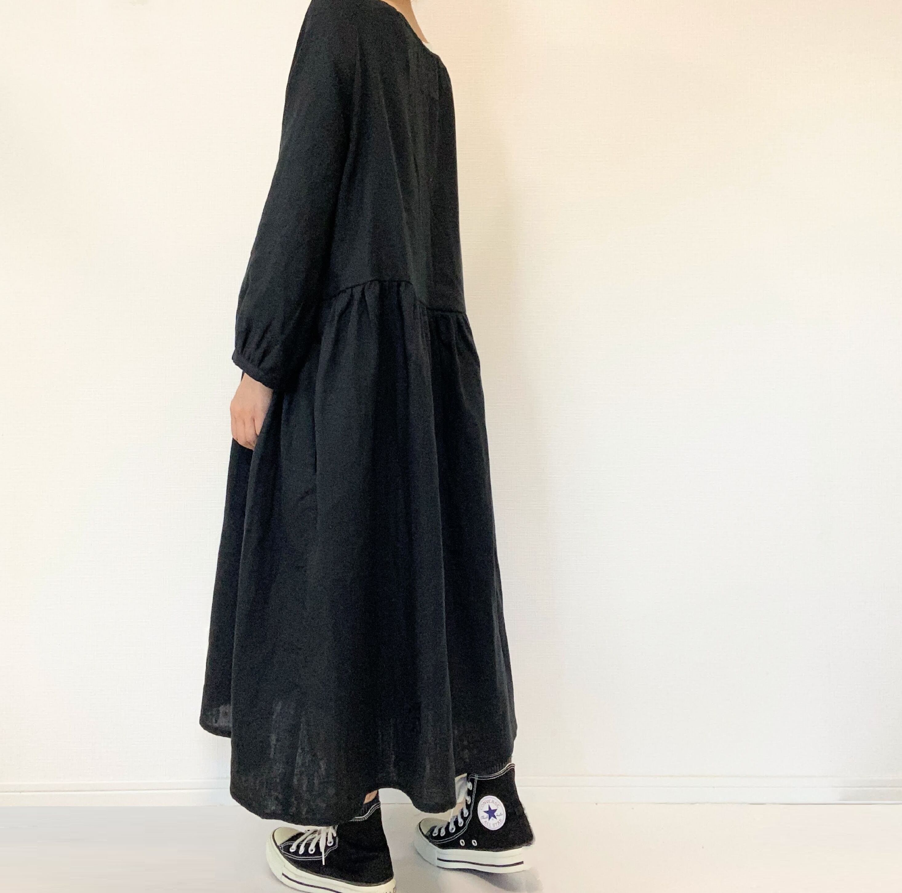 【送料無料】ふんわりダブルガーゼ*シンプル無地の長袖ワンピース*ゆったりフリーサイズ*国産コットン100%*ポケット付*ブラック