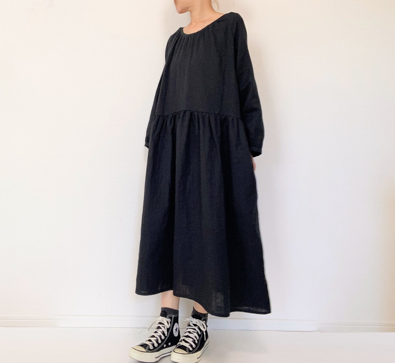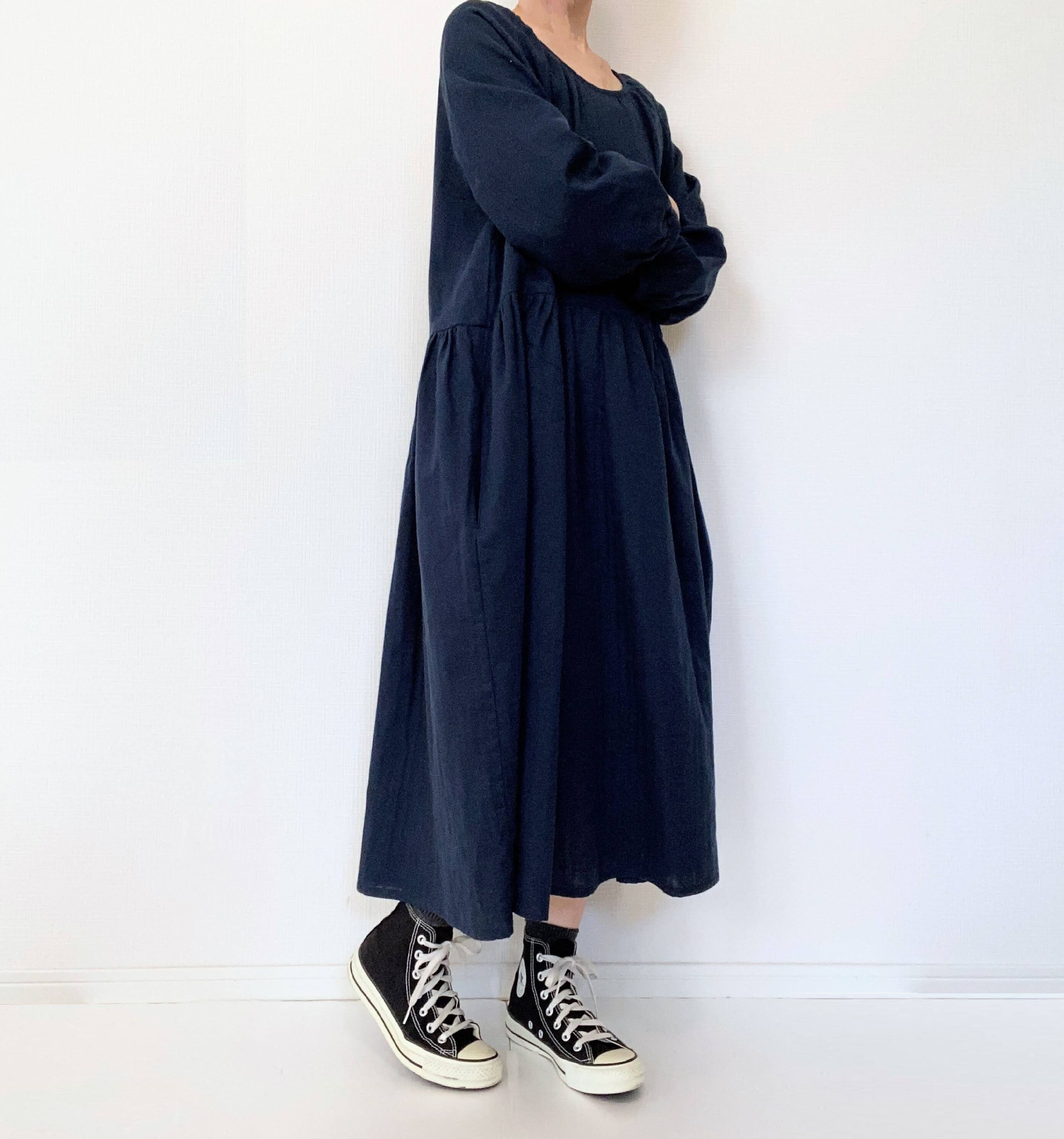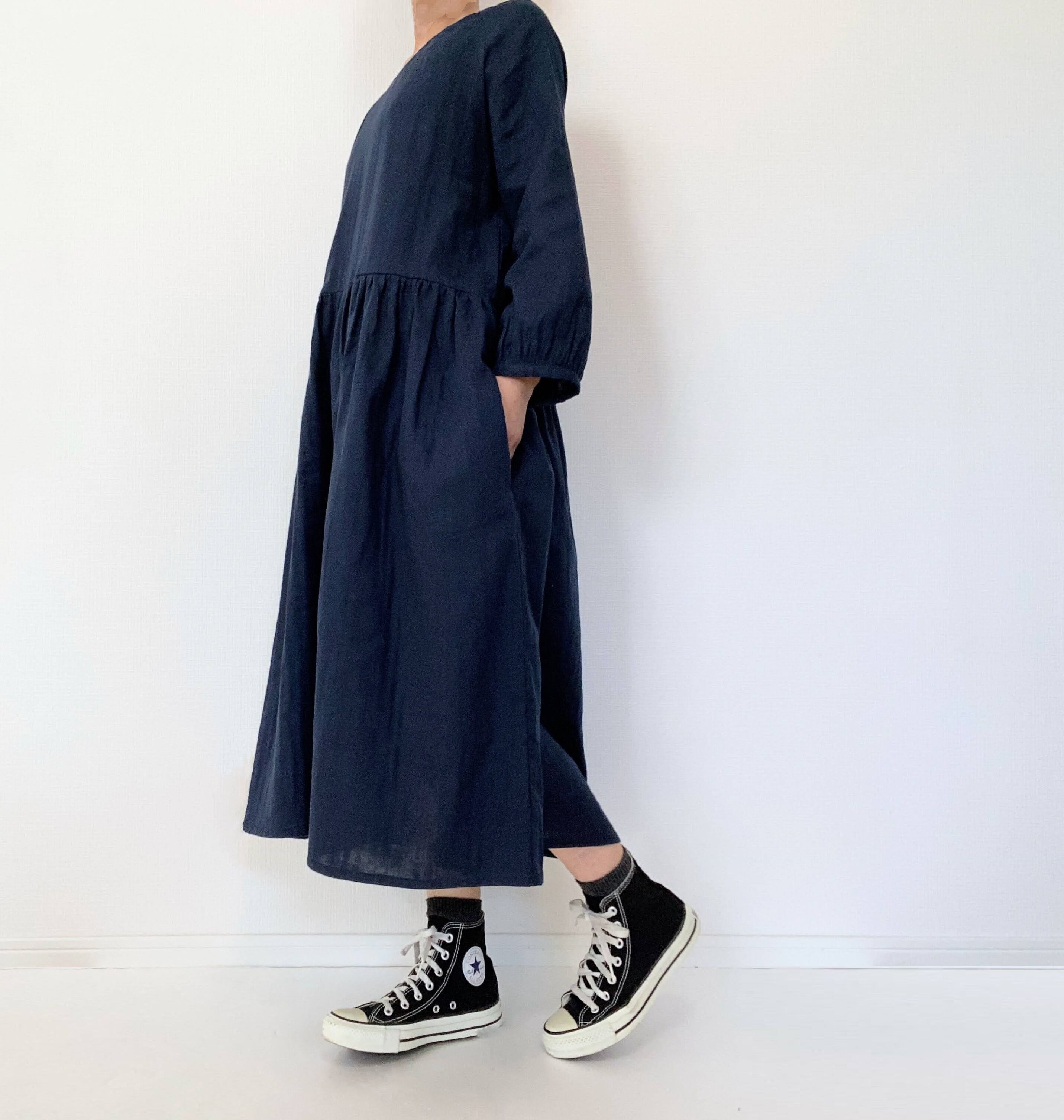 シンプル無地ワンピース。